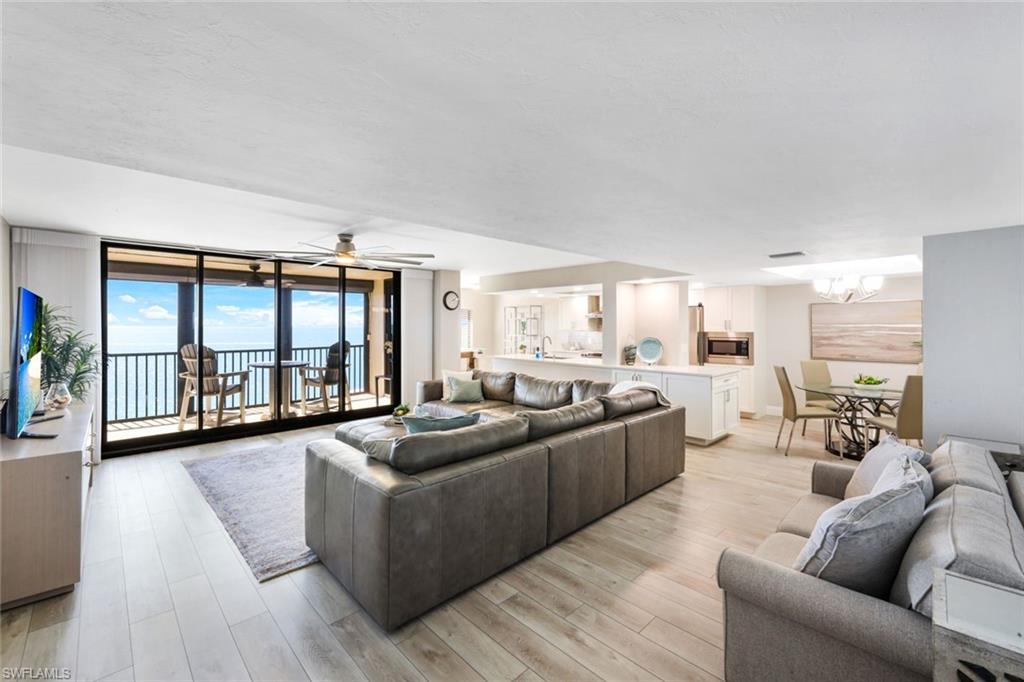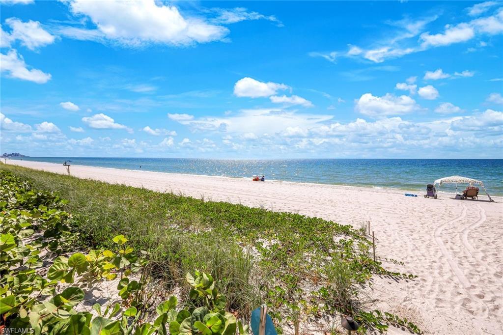 Freshly reimagined with a refined coastal aesthetic, this fully turnkey residence captures breathtaking, unobstructed views of Vanderbilt Beach and the Gulf. Every detail has been thoughtfully curated—from the designer Baer’s/Bernhardt furniture and art collection to the Hunter Douglas motorized shades, contemporary lighting, and wide-plank luxury flooring throughout. The bright, open kitchen showcases white shaker cabinetry, quartz countertops, and a spacious island with integrated dining and workspace, perfect for effortless entertaining and everyday living. The lanai is enhanced with brand-new hurricane-impact sliders and electric storm shutters, creating a seamless indoor-outdoor retreat overlooking the Gulf. The primary suite opens directly to the lanai and features a spa-inspired bathroom and generous walk-in closet, while the guest suite offers privacy, ample storage, and a welcoming coastal charm. Residents of Vanderbilt Gulfside enjoy an amenity-rich lifestyle across more than 8 acres of manicured beachfront grounds—boasting 750 feet of pristine shoreline, a heated saltwater pool (the largest on Vanderbilt Beach), two guest suites, two tennis courts, Tesla charging stations, grilling areas, a fitness center, and secure gated entry with covered deeded parking and private storage. With strong reserves, comprehensive insurance, and an unmatched beachfront setting, this property combines timeless coastal elegance with peace of mind and exceptional value.