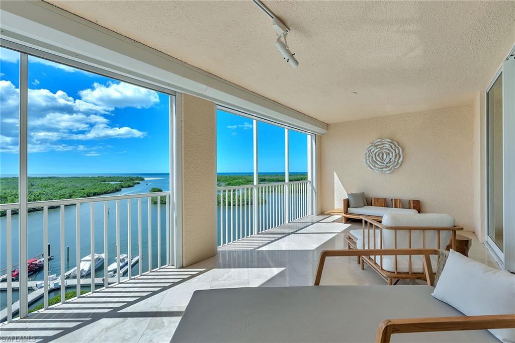 Experience island living at its finest in this 3,096-square-foot Pelican Isle residence with sweeping Gulf and river views. The desired Flagship floor plan offers two owner's suites plus a third en-suite bedroom/den, all designed for comfort and versatility. Enjoy wraparound views from the open kitchen and expansive west-facing lanai, ideal for unforgettable sunsets. Recent updates include all-new impact glass windows and sliders (2019-2020) and concrete building upgrades with roofs refinished in 2019. Deeded parking, storage and direct Gulf access via Wiggins Pass complete this rare offering. Optional Pelican Isle Yacht Club memberships bring a vibrant social lifestyle with tennis, pickleball, bocce, marina and beach shuttle. Just minutes from beaches, shopping, dining and hospitals, this is Naples waterfront living at its best.