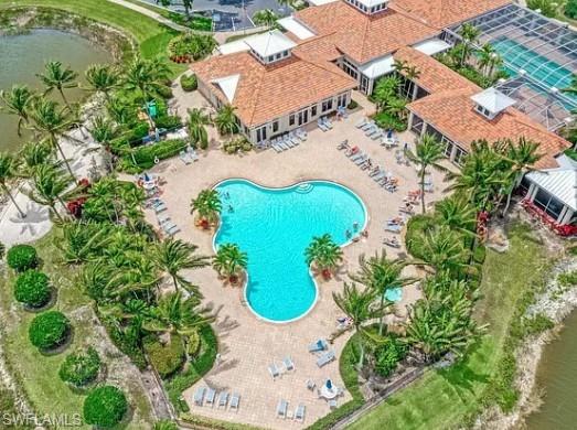 This impeccably updated and rarely available single-family pool home on a private corner lot awaits in the heart of North Naples’ highly sought-after Bridgewater Bay. Showcasing soaring 14 ft. tray ceilings, this light-filled residence impresses with plantation shutters throughout and an open-concept layout that flows effortlessly from the spacious living area—accented by an oversized designer fan—to the dining room and kitchen. The chef-inspired kitchen gleams with 2022 stainless KitchenAid appliances, white cabinetry, granite countertops, and a glass-tile backsplash. With thoughtful upgrades such as a tile roof (2021), luxury vinyl plank flooring in living areas (2022), modern lighting throughout (2022), a full exterior repaint (2022), and a new A/C system (2022), this home offers style and substance in equal measure. The laundry room is equipped with built-in cabinetry, a utility sink, and LG front-load washer/dryer for convenience. Unwind in your heated pool and spa, surrounded by mature tropical landscaping—towering palms, lush oaks, and vibrant greenery. The 2.5-car side-loading garage with an extended paver driveway adds curb appeal and ample space for vehicles or storage. Additional peace of mind includes a security system and hardwired Ring floodlight cameras and doorbell (2022). Located in Flood Zone X so no flood insurance is required, this home never lost power or sustained damage during Hurricane Ian. Bridgewater Bay is a resort-style gated community offering unmatched amenities, featuring two pools (resort-style and lap), tennis, pickleball, bocce, and basketball courts, a clubhouse with fitness center and social calendar, a playground, and tranquil lakes. Two convenient access points on Orange Blossom Drive and Livingston Road provide effortless connectivity. Perfectly positioned just 3 miles to Naples beaches, 2 miles to Mercato, and close to I-75, this home combines location, lifestyle, and luxury in one perfect package.