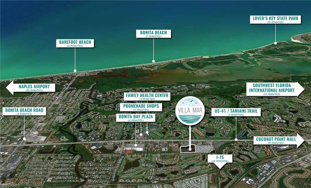 Welcome to Villa Mar in Bonita Springs! This gated community's first-floor corner unit offers 2 bedrooms, 2.5 baths, an open great-room layout, and a 1-car garage. Ideally situated, enjoy dining at Bonefish Grill and Bonita Brunch just beyond the gates. You're only a short drive from Coconut Point Mall (3 miles), Mercato in Naples (less than 10 miles), the Promenade of Bonita Springs (under a mile), and the pristine blue water of the gulf (only 5 miles away). Move in seamlessly with this fully furnished, professionally decorated home. Inside, you'll find LED lighting, custom fans, and designer hurricane-resistant window treatments. Villa Mar boasts a lifestyle pool, fitness center, and social lounge, all with low HOA fees—offering exceptional value in the community!!