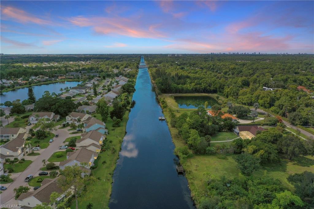 Enjoy Spectacular Sunsets in Trafalgar Square! Experience the best of Florida living from this charming first-floor end unit in the desirable Trafalgar Square-Berkshire Village community. This spacious residence offers 2 bedrooms, 2 bathrooms, and an attached one-car garage. The cathedral ceilings in the living and dining areas create an open, airy feel, while the screened lanai provides the perfect spot to unwind and take in serene water views of the Golden Gate Canal- watch boats and jet skis glide by as the sun sets. The primary bathroom features an updated shower, and the washer and dryer are conveniently located in the garage. Newer roof (2019) New Water heater (Oct 2025). Enjoy a quiet neighborhood just a short walk to the community pool. Berkshire Village also offers wonderful amenities including a fishing pier, tennis courts, and pickleball courts. The Golden Gate Community Park is right across the street, and you'll have easy access to I-75, as well as nearby shops, restaurants, the airport and more. Pet-friendly community.