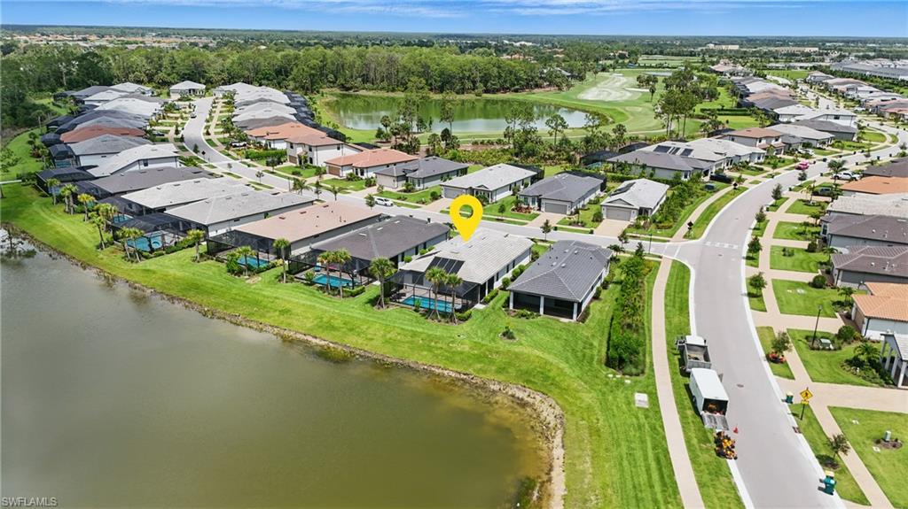 Impress guests with zero-corner sliding doors opening to an oversized lanai with fire pit and a saltwater pool (solar and gas heated). This highly desired MYSTIQUE floor plan by Pulte/DiVosta is offered with a water view and has natural gas, electric blinds, as well as plantation shutters throughout! Interior highlights include a spacious primary suite with dual sinks, a glass walk-in shower, separate soaking tub, and a large custom closet system with soft-close doors and drawers. The two-car garage features an epoxy-coated floor for a clean, durable finish. Located in Terreno, a gated and amenity-rich community off Oil Well Road. Residents enjoy the newly opened Olive & Thyme bar/restaurant, resort-style pools, clubhouse, fitness center, pickleball, tennis, dog park, playground, and golf access. Convenient to major new development, offering excellent value and lifestyle. Valencia golf and country club weaves throughout the community giving you access to a public course with easy access and low fees!