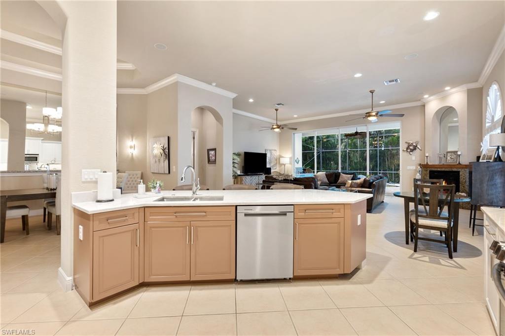 This 3 bedroom, 2.5 bath home in the prestigious West Bay Club has been fully updated with new custom cabinets in both the kitchen and master bath, quartz countertops, stainless steel appliances, gas cooktop, plantation shutters, and new carpet in all bedrooms. The modified St. Tropez model offers an expansive open floor plan with crown molding throughout, decorative fans, and light fixtures, plus a natural gas fireplace that is perfect for cozying up with family and friends. The screened-in covered lanai area features a heated pool with a sun shelf, a full outdoor kitchen, and a spectacular firepit! West Bay Club is a premier lifestyle community, amenities include a new private Beach Club on the Gulf of Mexico with a restaurant/bar, plus chair and towel service. The newly renovated Bay House offers a resort-style pool, Aqua Cafe poolside restaurant, 8 clay tennis courts, and Technogym state-of-the-art fitness center. West Bay’s River Park is on the Estero River and features a fishing pier, boat launch w/Gulf access, boat storage, kayaks/canoes, playground, basketball court, picnic areas, and a 1.5-mile walking trail. The Sports Park offers residents 6 pickleball courts, a fitness lawn, bocce courts, and 2 separate dog parks. Memberships are also available to the private 18-hole Pete and PB Dye golf course and clubhouse.