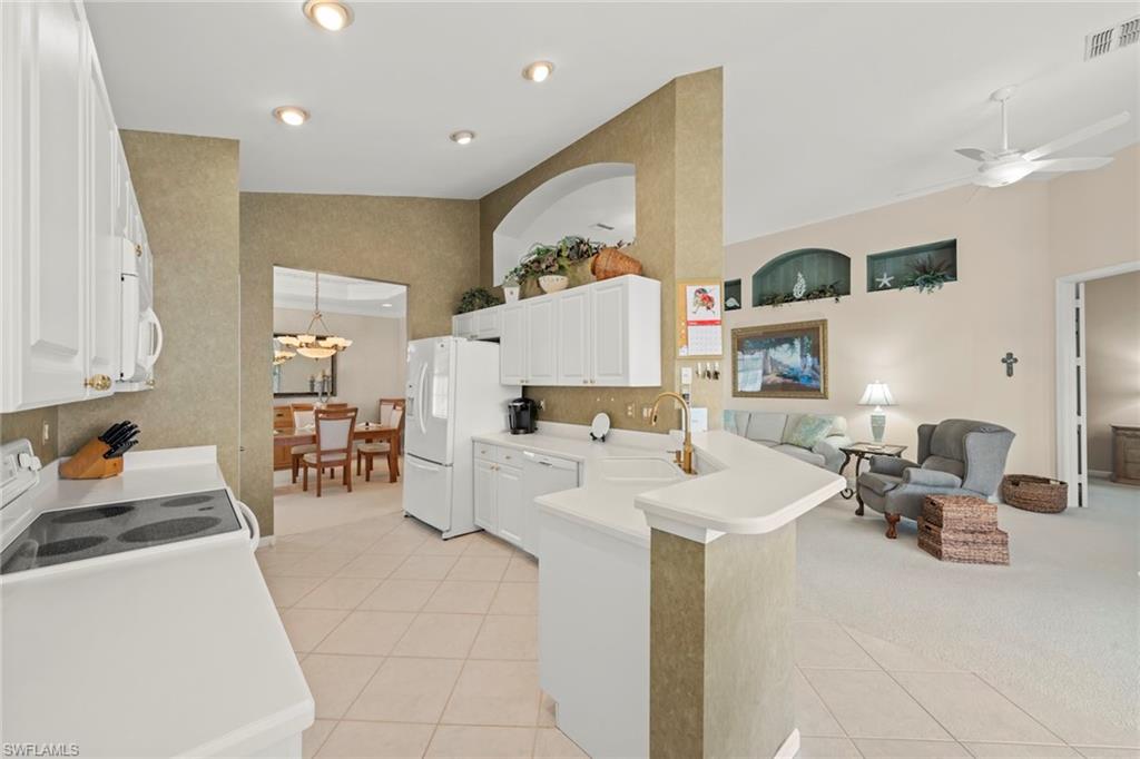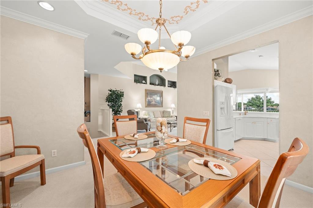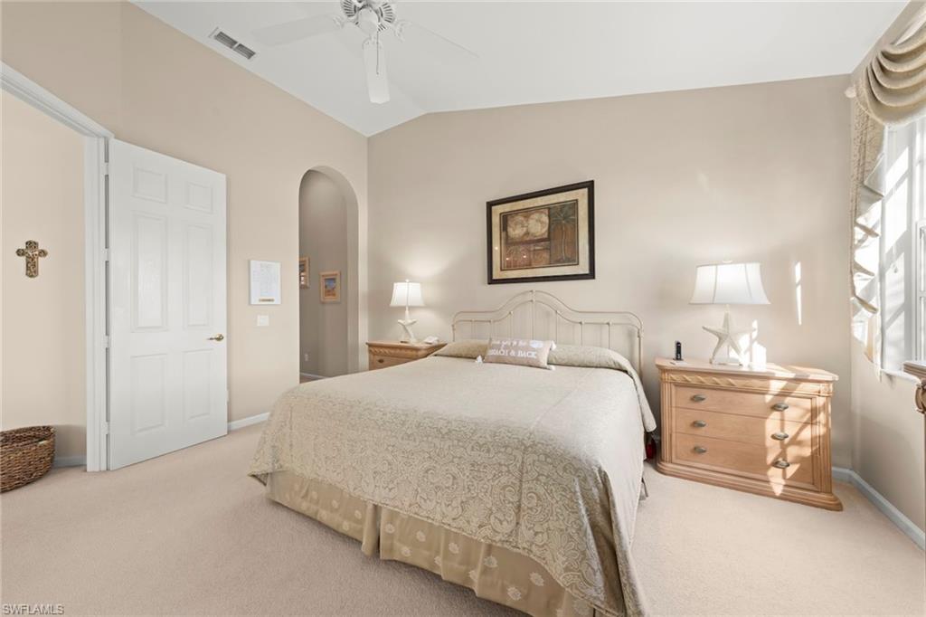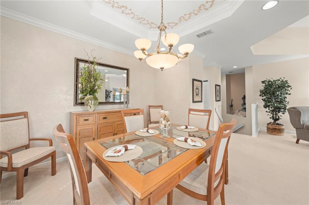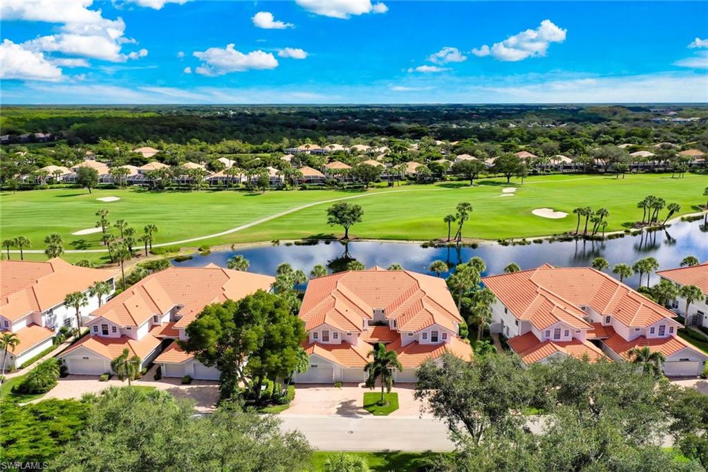Enjoy tranquil eastern-facing views of the golf course and lake from this turnkey furnished end residence in Shadow Wood at The Brooks. Designed with soaring ceilings and abundant natural light, the home also offers opportunities for bird watching and quiet reflection. Recent upgrades include a newer air-conditioning system, a tankless water heater, a washer and dryer, and a durable tile roof installed in 2021. A fresh exterior paint scheme with updated lighting and gutters enhances the residence’s curb appeal. The kitchen reflects a light and bright aesthetic with white cabinetry and Corian countertops. The spacious primary suite features expansive lake and golf views, a large walk-in closet, and a spa-style bath with a tiled shower, soaking tub, dual sinks and dedicated vanity. The oversized front guest bedroom includes a built-in desk and custom wall unit, offering flexibility as a sleeping space or home office. A third bedroom with twin-set beds is near the guest bath, which includes a custom vanity and designer accents. The screened lanai is the ideal place for morning coffee or alfresco dining with panoramic nature views. Additional features include electric storm shutters and two bicycles for enjoying the community’s miles of walking and biking trails. Shadow Wood spans 1,500 acres east of U.S. 41 and offers 54 holes of championship golf, nine tennis courts and three bocce courts with optional memberships. A new lifestyle center is underway, which will feature a resort-style pool, poolside dining and six indoor pickleball courts.
