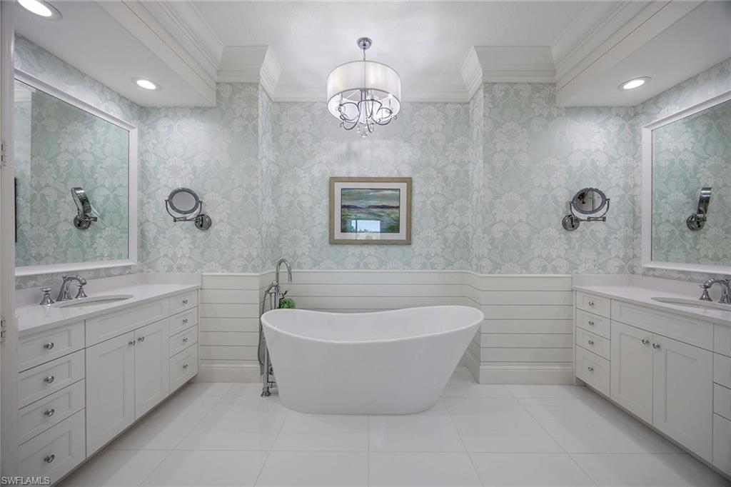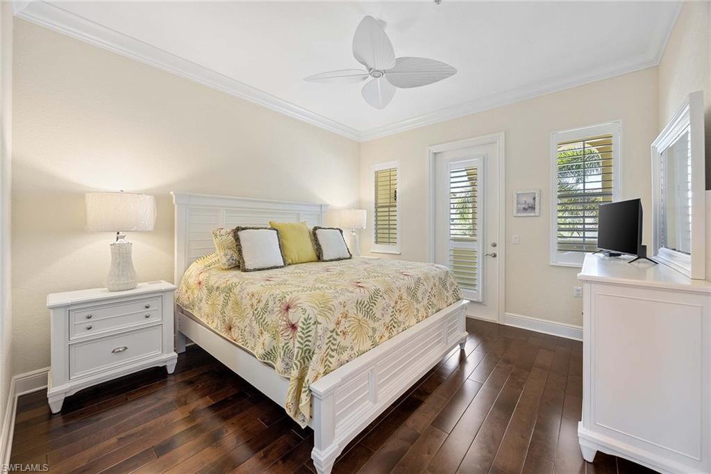 Relish the embodiment of the Naples resort lifestyle! In a quiet neighborhood, this second-floor, lakefront, coach home has been lavishly remodeled to surpass the surrounding basic, ongoing new construction. Upgrades include beautiful wood flooring throughout most of the home, wood steps, wrought-iron staircase, quartz countertops, 42-inch white custom cabinets with soft-close drawers, JennAir stainless appliances, designer crown molding throughout, plantation shutters and decorative wood walls. Hurricane-impact windows and doors throughout, and electric storm screens on lanai provide an added level of safety. Newly installed elevator, HVAC and more. The formal living room adds a touch of elegance to this magnificent home. The primary suite opens into the lanai with lake views and features two spacious walk-in closets. The primary bath has dual sinks on opposite walls with an oversized shower and soaking tub. The large second bedroom features en-suite bath with private Juliette balcony. Third bedroom has decorative wood-trimmed walls. The half bath can be returned to full bath if desired. Tastefully decorated with upscale furnishings and designer treatments provide immediate enjoyment for discerning individuals. Fiddler’s Creek is a guard-gated, patrolled, resort community featuring a nature park with boardwalk and gazebo, 54,000-square-foot clubhouse, six Har-Tru tennis courts, bocce ball, four pickleball courts, state-of-the-art fitness facility and full-service spa, resort-style multi-pool swimming complex with cascading waterfalls and whirlpool, a variety of clubs, classes and seminars, year-round social activities, events and themed dinner parties. Culinary choices include Caxambas for fine dining, casual alfresco at The Gator Grille and beachfront at Sale e Pepe.