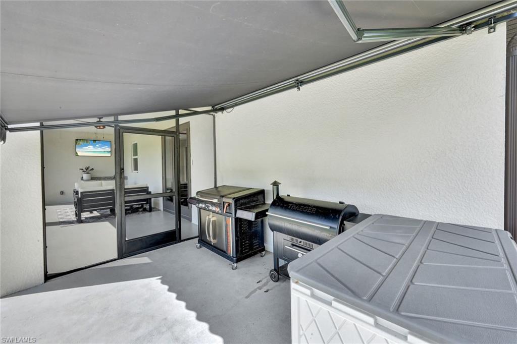 Experience the perfect blend of modern luxury and peaceful rural living in this immaculate 3-bedroom + den home with a 2-car garage. Designed with over 1,900 sq. ft. of refined elegance, this residence features tray ceilings, granite countertops, custom wood cabinetry, a spacious island, and top-tier smart appliances that elevate everyday living. Every detail reflects quality and comfort—enjoy a whole-house generator, 1,000-gallon buried propane tank, hurricane-impact windows, plantation shutters, solar attic fan, and custom closet systems throughout. The home also features a full Sonos sound system for whole-house enjoyment, including surround sound in the family room. Step outside to your private paradise with lush, fully irrigated landscaping illuminated by Philips Hue smart lighting. The property boasts 9 irrigation zones for the yard and 2 for the garden, complemented by a 14x30 metal storage building equipped with A/C and a sink—perfect for the garden enthusiast with a large raised bed setup. The front yard is adorned with exotic palms and a beautiful ornamental fence with an automatic smart swing gate, controllable from your phone or Alexa. For peace of mind, the home is protected by a wired Lorex security and alarm system. Best of all there is NO HOA!! Luxury, technology, and tranquility come together in this exceptional home—your private retreat awaits!
