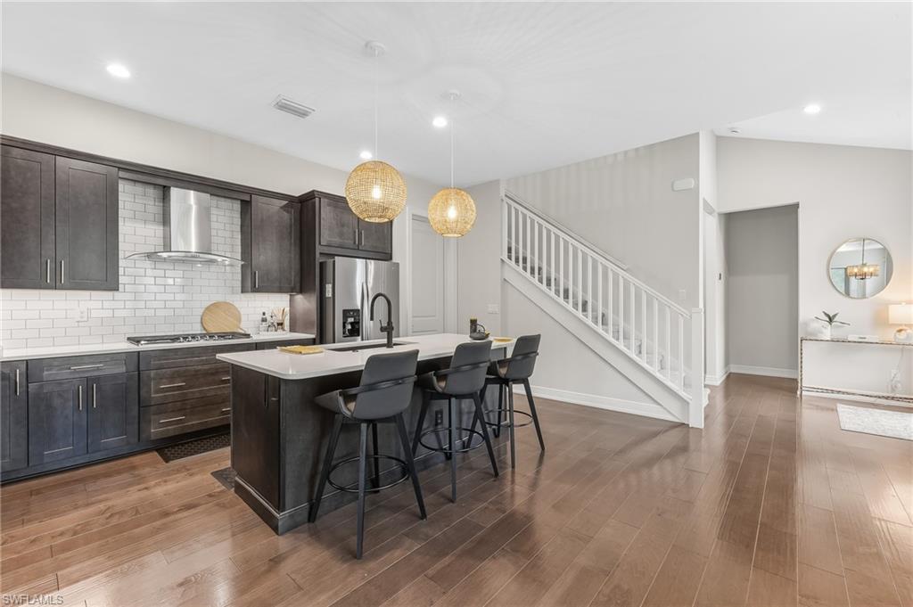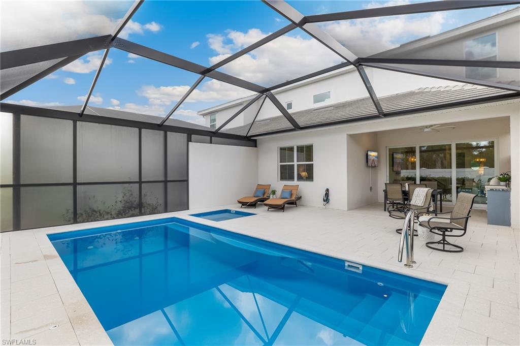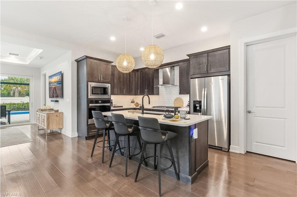 Located in the desirable gated community of Azure at Hacienda Lakes, this exceptional home offers the perfect blend of luxury, comfort, and resort-style living. As you drive through the beautifully landscaped entrance, you’ll immediately sense the elegance and vibrancy of this amenity-rich community. Step through the custom front door and you’re greeted by an open, thoughtfully designed floor plan with views of the newly installed pool and spa. The first floor features warm wood flooring throughout, creating a welcoming and sophisticated atmosphere. The chef’s kitchen is a showstopper, complete with a counter-height quartz island, custom wood cabinetry, upgraded stainless steel appliances including a gas range, and a walk-in pantry. A sleek glass backsplash and custom stainless hood add a touch of contemporary elegance. The kitchen seamlessly opens to the dining and spacious living area—ideal for entertaining family and friends. The primary suite offers serene views of the pool and includes an upgraded en-suite bath with quartz countertops, a frameless glass shower, and a large walk-in closet. A guest bedroom and full bath are also conveniently located on the main level. Upstairs, you’ll find a versatile bonus room/loft—perfect for a second living area, home office, or media room. A third bedroom and full bath provide the perfect private retreat for guests or family members. Step outside to your private outdoor oasis, where a large panoramic screened lanai features multiple seating areas, a fully equipped outdoor kitchen, and a beautiful pool and spa framed by a privacy wall. Whether you’re relaxing by the pool, dining al fresco, or simply enjoying the tranquil setting, this outdoor space is truly special. Additional highlights include designer lighting, upgraded fans, and impact-resistant windows and doors. Residents of Azure enjoy world-class amenities, including a resort-style pool with private cabanas, pickleball and tennis courts, a fitness studio, clubhouse with pub and catering kitchen, salon, gathering room, and fire pit with seating area—all with low HOA fees compared to similar communities. Don’t miss the opportunity to experience this beautiful home and the exceptional lifestyle Azure at Hacienda Lakes has to offer. Come see it today—and start living the Florida dream!