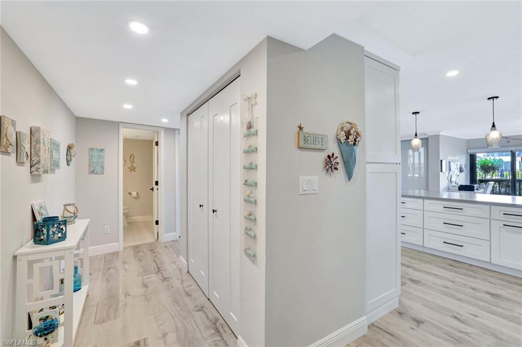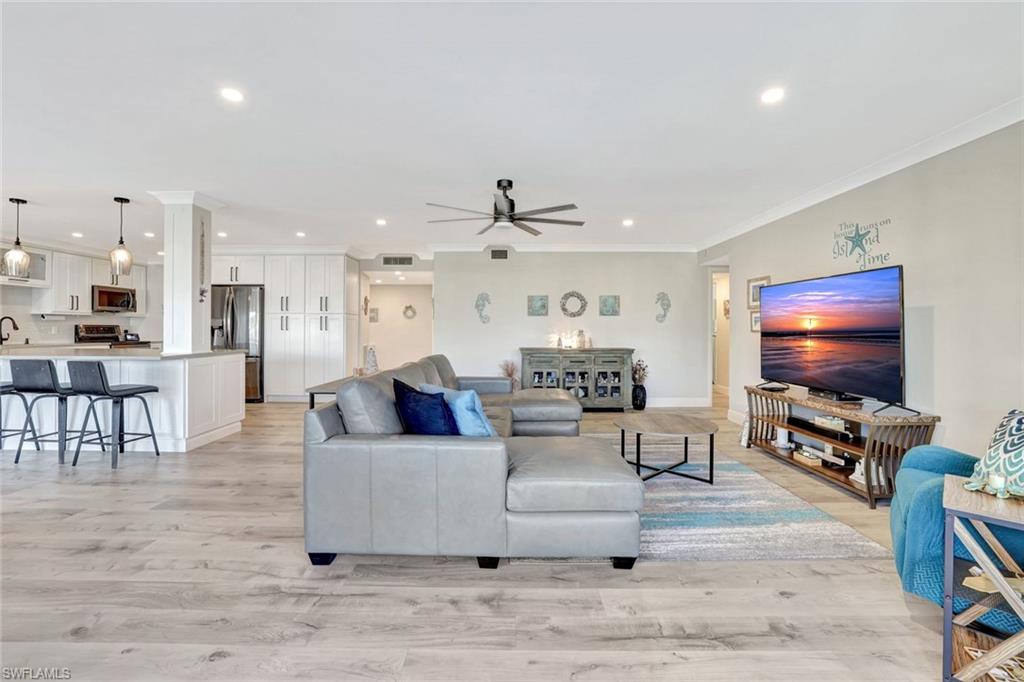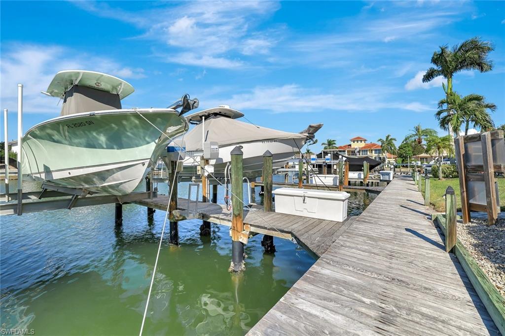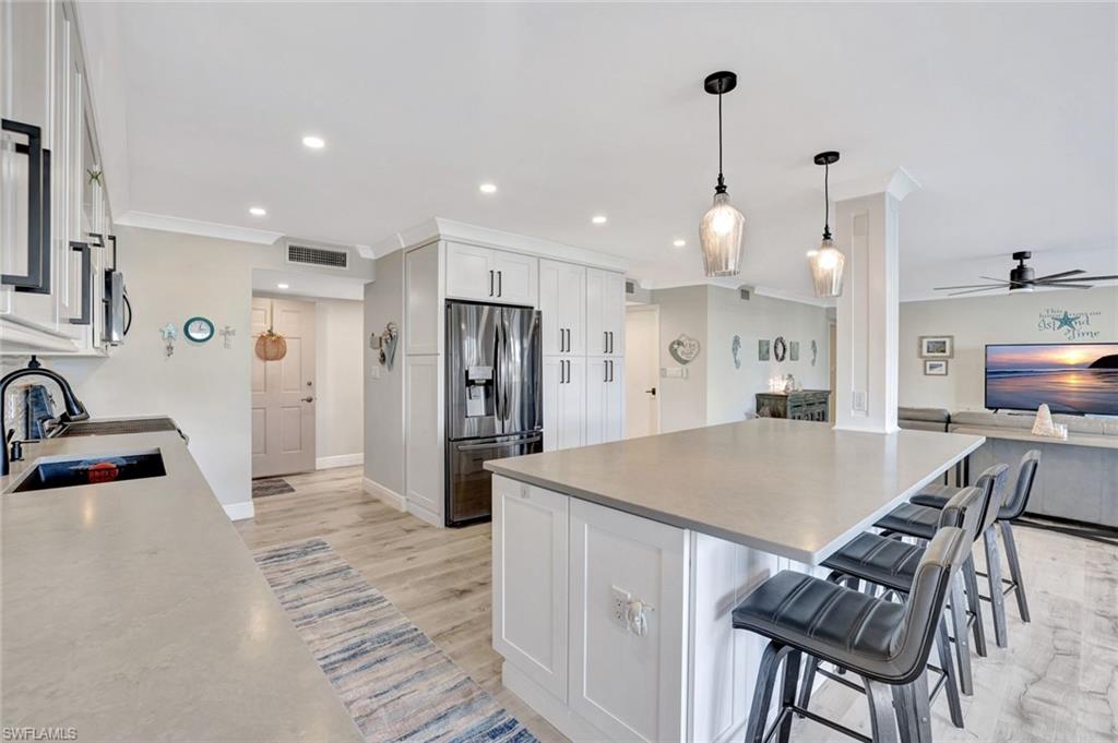 Welcome to this COMPLETELY UPDATED first floor unit in boaters paradise! A RARE GEM, this unit has its own deeded boat slip (slip #1) and has been beautifully renovated for you to begin enjoying paradise in beautiful Marco Island! This First Floor unit remains HIGH AND DRY. Tropical Isle is located at the south tip of Marco Island which provides the benefit for boaters of both quick and easy access to the gulf and NO bridges! Featuring two bedrooms, two and a half baths, and 1,660 square feet of living space, lovely renovated condo is a perfect blend of comfort and elegance. The layout is enhanced by large impact-resistant windows and sliders that allow all the natural light into your living space. The bright and spacious living room extends to a lanai, perfect for relaxing while overlooking the tranquil canal. The lanai features a tile floor, a screened enclosure with sliding glass doors, and plenty of seating space, creating an ideal spot to enjoy the serene views. The gourmet kitchen has white cabinets, a large center island made of honed concrete quartz ,and stainless steel appliances including a range, microwave, trash compactor, dishwasher, and refrigerator. The owner’s suite is a true retreat with glass sliding doors that lead to the private balcony and lanai offering owners tranquility The en-suite bath is designed for luxury with a double sinks, full-width mirrors, and a walk-in shower with a glass enclosure and customer tile . The second bedroom has its own balcony and is served by an adjacent bath featuring a vanity and a glass enclosed shower and custom tile. Additional highlights include a laundry room with washer and dryer, as luxury laminate flooring throughout the main living areas. This residence also includes a convenient covered parking space! Tropical Isles offers numerous amenities, including a fitness center, library, community room, hobby room, rentable kayak racks, a heated pool, and ample covered parking with bike racks. Set in a low-density building on a quiet cul-de-sac, this condominium is a half a mile from South Beach an easy morning walk with access and close to dining, shopping, a movie theatre, and mini golf. Enjoy the island’s museums, boutiques, restaurants, library, pickleball, tennis, golf, and parks, and an executive airport just off the island. Experience the ultimate Florida lifestyle in this exquisite waterfront condominium, where every detail has been carefully curated to provide an unparalleled living experience.