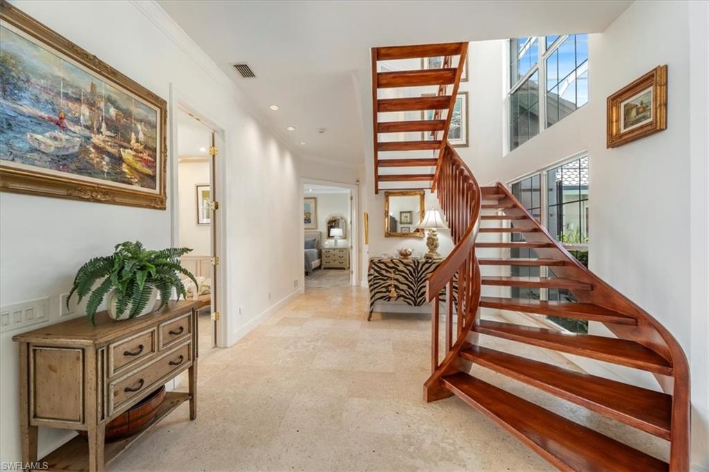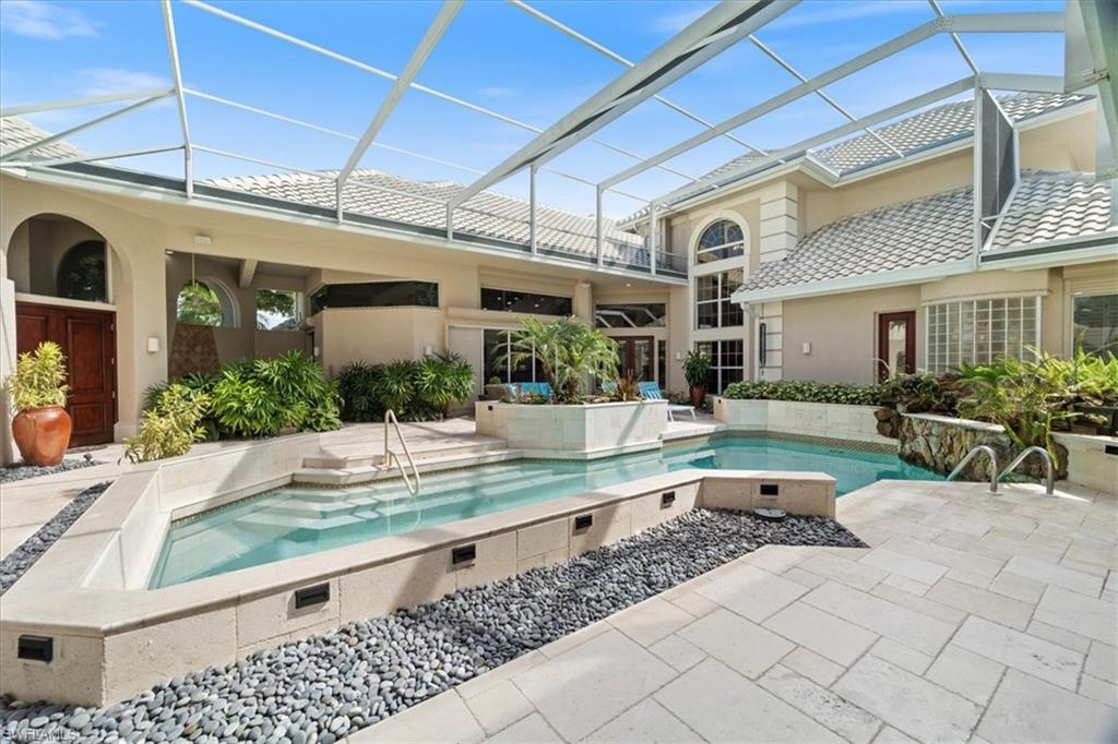 Experience the perfect blend of elegance and leisure in The Sanctuary at Bonita Bay, an exclusive enclave celebrated for its natural beauty and world-class amenities. This exceptional residence places you at the heart of a community designed for those who appreciate an active, sophisticated lifestyle. Fabulous tropical courtyard home with southern exposure and breathtaking lake views. From the moment you enter the circular drive and through the double front doors, the expansive courtyard and serene water vistas create an unforgettable first impression. Nearly every aspect of this home has been thoughtfully updated, offering refined style and comfort throughout. The interior features spacious, open-flowing rooms with architectural detail, beautiful shell stone and wood flooring, a gourmet family kitchen, and volume ceilings that enhance the natural light. Additional highlights include a 3-car air-conditioned garage, outdoor kitchen, and a whole-house generator. The private cabana provides two comfortable guest rooms, perfect for visiting family and friends. An expansive lanai spans the rear of the home on both levels, overlooking the lake, ideal for entertaining or enjoying tranquil sunsets. Every detail of this residence reflects quality and care, making it truly exceptional and showing like a model home. Residents of Bonita Bay enjoy access to five championship golf courses, tennis and pickleball, state-of-the-art fitness facilities, parks, miles of walking and biking trails, a private beach club, and a full-service marina with direct Gulf access. The community’s luxurious 9,000-square-foot Spa and Salon offers the ultimate in relaxation and rejuvenation, featuring seven treatment rooms, sauna and steam rooms, a whirlpool, and a tranquil relaxation lounge. Full spa services are available, along with a dedicated women’s hair and nail salon and a men’s barber. Dining options abound at Bonita Bay Club. The elegant Fireside Room provides a refined dining experience, while the Club Room offers resort-casual ambiance for both indoor and al fresco dining. For golf enthusiasts, optional Bonita Bay Club membership offers premier courses, fine dining, wellness programs, and a vibrant social community. Beyond the gates, downtown Bonita Springs beckons with upscale restaurants, artisan breweries, boutique shopping, live entertainment, and seasonal art festivals. Discover the best of Southwest Florida living at 4300 Sanctuary Way, where every day feels like a getaway.
