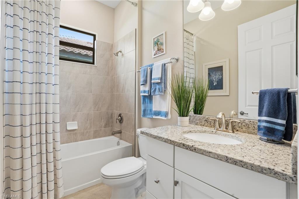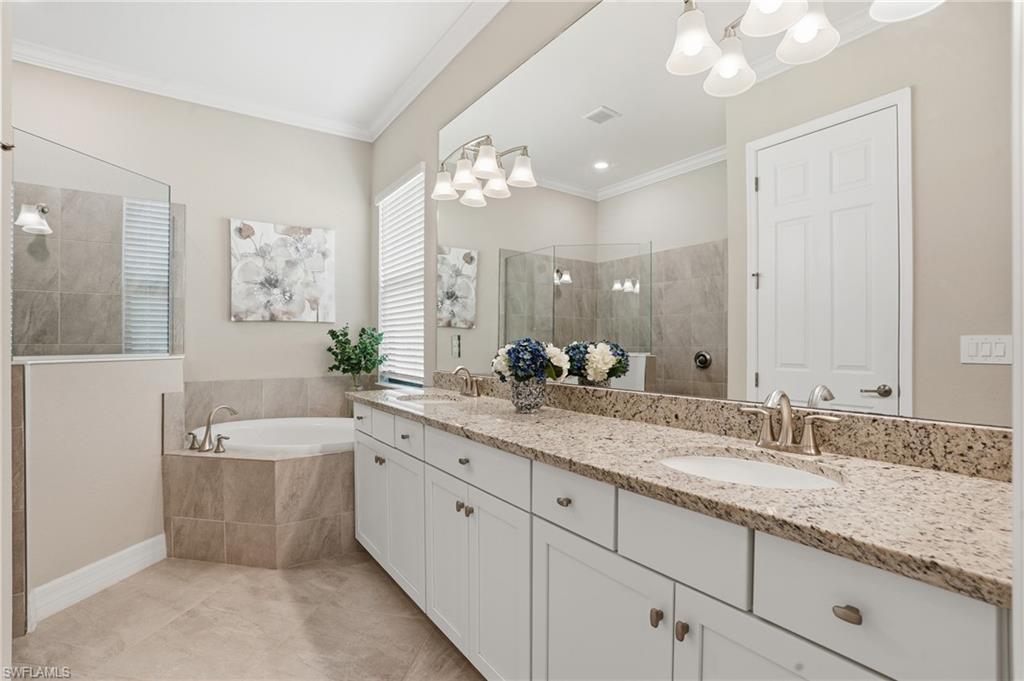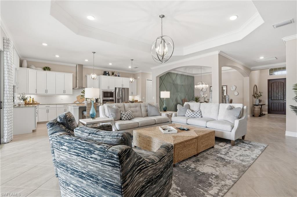 Introducing a rarely available Angelina model TURN-KEY in the highly sought-after Bonita National Golf & Country Club—where elegance, comfort, and resort-style living truly come together. This stunning 3-bedroom, 2-bath home is one of the most desirable floor plans in the community. Better than a model, this beautifully designer-decorated home is truly move-in ready and offers the perfect blend of coastal elegance and casual sophistication. The open-concept layout effortlessly flows from the great room to the gourmet kitchen and dining areas, creating an ideal space for relaxed living and effortless entertaining. The gourmet kitchen is as functional as it is beautiful, featuring an abundance of cabinetry that offers exceptional storage space for all your culinary needs. Thoughtfully designed with extended upper cabinets, deep lower drawers, and a large pantry area, this kitchen ensures everything has its place—keeping your counters clutter-free and your cooking experience seamless. Whether you love to entertain or simply enjoy an organized home, the generous storage options make this kitchen a standout. A rare vented kitchen hood with exterior exhaust—a highly sought-after upgrade for serious cooks. Slide open the pocketing glass doors and step into your private outdoor sanctuary. The extended screened lanai showcases a sparkling heated salt water pool and spa, a custom-built outdoor kitchen with sink, and generous seating areas for lounging and dining. Thoughtfully placed professional landscape lighting creates an inviting evening ambiance, perfect for entertaining under the stars. Eastern exposure delivers beautiful sunrise views and comfortable afternoon shade on the lanai. Additional features include: Spacious primary suite with lanai access and luxurious ensuite bath, two beautifully finished guest bedrooms, upgraded laundry room with storage and utility sink. Epoxy-finished garage floor with overhead storage racks and custom cabinets, impact-resistant doors and windows for peace of mind and the Lani is equipped with hurricane design storm shades. Located in the resort-style community of Bonita National, offering golf privileges for social member May thru October, tennis, future pickleball courts, fitness center, full-service spa, clubhouse dining, and more! This home offers everything you dreamed of in Florida living—elegance, comfort, and a lifestyle that feels like vacation every day. A must-see in person—homes like this don’t come along often!