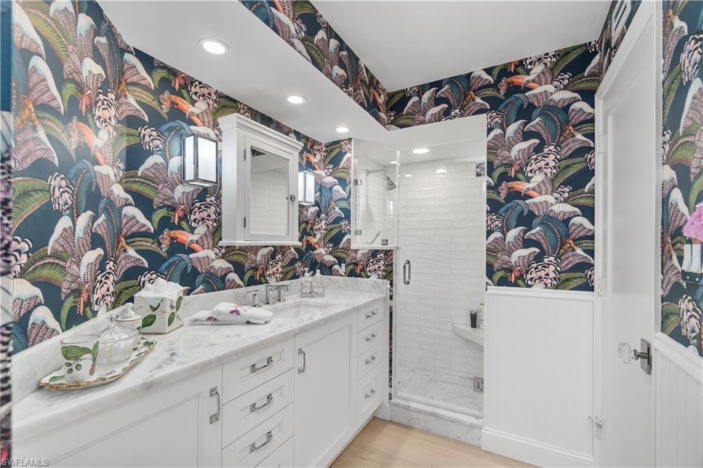 Experience elevated coastal living in this beautifully remodeled two-bedroom, two-bath residence with over 1,800 square feet of living space at the Esplanade Club in Park Shore. A high-end renovation brings a modern sense of elegance with a brand-new kitchen completed in 2024 featuring custom cabinetry, premium quartzite countertops, and top-of-the-line appliances including a Wolf range and Sub-Zero refrigerator, while the bathroom renovations showcase refined finishes and spa-inspired design. The open living and dining areas flow seamlessly onto a wraparound balcony capturing sweeping Gulf views, and a custom-lit granite bar adds ambient warmth perfect for entertaining. The primary suite offers his-and-hers closets, dual sinks, and a walk-in shower with multiple showerheads. Esplanade Club provides resort-style amenities including a beachfront pool and spa, modern fitness center, tennis and pickleball courts, and a dedicated dog park. With direct beach access, 24-hour security, and a vibrant social atmosphere, this move-in-ready residence embodies the essence of Naples beachfront living. Residents also enjoy the opportunity to lease or purchase a boat slip at the nearby Venetian Bay Yacht Club, offering ideal access to boating and the open waters of the Gulf.