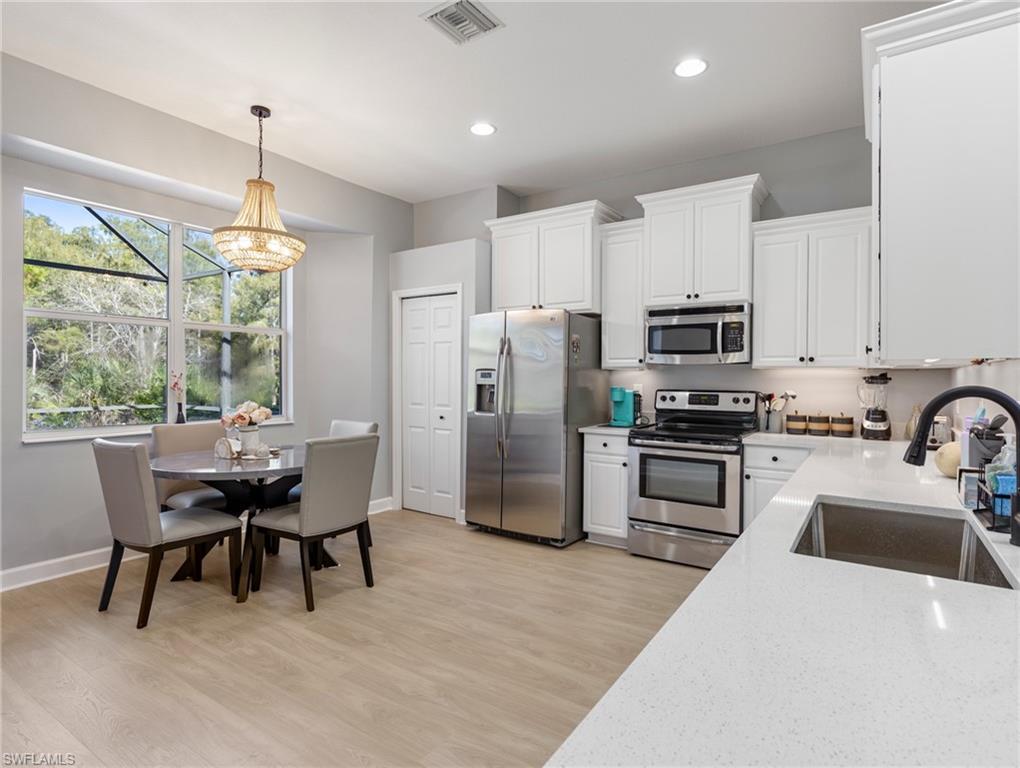 Welcome home to this stunning 2-story residence in Bella Terra featuring a rare FIRST FLOOR MASTER/PRIMARY SUITE and a private pool with a 3 car Garage and private, natural preserve views. Located east of I-75 and not in a flood zone, this home offers both peace of mind and resort-style living. Inside, you’ll find 3 bedrooms plus a spacious loft, perfect for a home office, media room, or play area. The master suite conveniently located downstairs opens directly to the pool deck, an ideal spot to enjoy your morning coffee while taking in the lush, natural backdrop. The home boasts a freshly painted interior in neutral tones, white cabinetry with quartz countertops, luxury vinyl plank flooring throughout the main living area, brand new carpeting upstairs, upgraded bathrooms and a UV light in the Newer A/C system for optimal air purification. With high ceilings and an abundance of natural light, this home feels open, bright, and welcoming. Enjoy the versatile floor plan, private pool, and 3 car garage, a rare combination at this price point. The rear preserve view offers tranquility and privacy, while being conveniently close to the community clubhouse and amenities. Bella Terra spans over 999 acres, with half the community dedicated to lakes and preserves, home to a variety of native Florida wildlife. Residents enjoy an exceptional lifestyle with a resort-style clubhouse, 24 hour fitness center, activities for all ages, resort-style pool and spa, children’s play area, tennis and pickleball courts, bocce ball, sand volleyball, multi-use sports fields, a butterfly garden, and scenic walking trails. Don’t miss your chance to view this exceptional Estero pool home. Schedule your private showing today before it’s Gone!