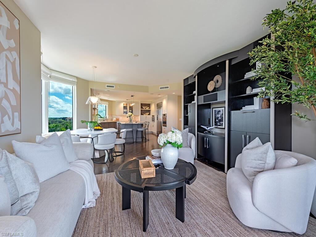 Step into refined coastal living in this exceptional three-bedroom plus study residence at the distinguished Montenero in Pelican Bay. A wall of glass opens to a sweeping 46-foot lanai, framing uninterrupted views of the Gulf of Mexico and Clam Pass estuary. Every detail has been meticulously curated, from the stunning chef’s kitchen with premium Bosch appliances to the elegantly appointed living spaces. Three full bathrooms and a stylish powder room offer comfort and privacy, while two assigned parking spaces in the covered garage ensure convenience. Designed for both relaxation and entertaining, this home seamlessly blends modern luxury with timeless tranquility. Each en-suite bedroom offers private lanai access, creating an atmosphere of refined coastal living.