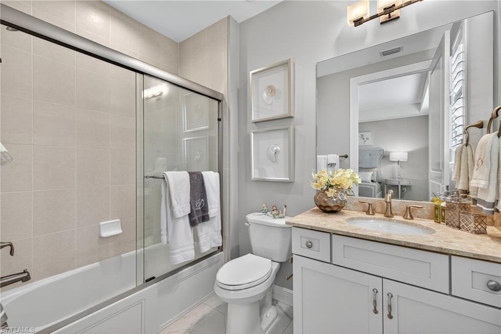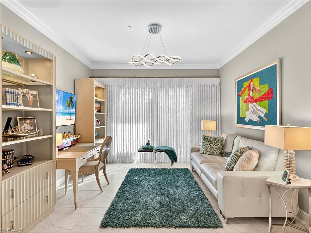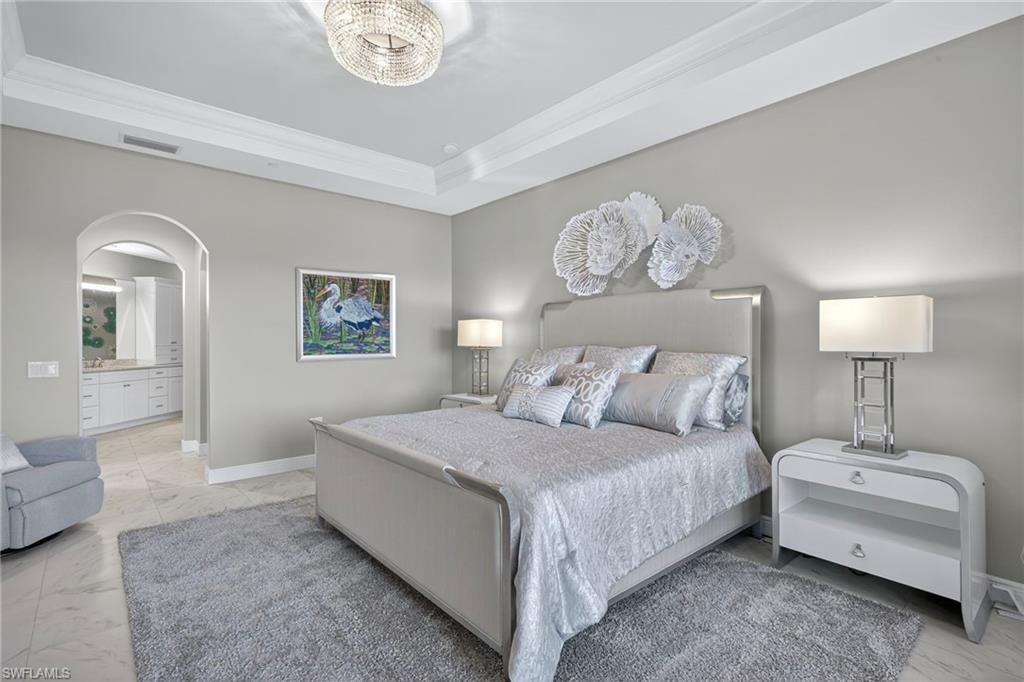 Experience resort style luxury living at Marquesa Royale, located just a short distance from The Ritz-Carlton Naples, Tiburon Golf Resort. This exquisitely REMODELED penthouse-style residence, has been masterfully designed and decorated, offering an exceptional blend of sophistication and comfort. The open-concept design invites natural light streaming throughout. Zero-corner sliding glass doors extend the living space seamlessly to the expansive lanai. Every detail has been thoughtfully curated, from the rich cabinetry and upgraded flooring, to the luxurious window treatments gracing every room. No design element was overlooked in creating this timeless, elegant home. Built in 2012, this residence showcases three spacious bedrooms, all with walk-in closets and ensuite baths. The generously sized den at 12x14 ft, adds additional space for both a private office and extra room for guests. Enjoy breathtaking views overlooking the 13th fairway of Tiburón’s renowned Gold Course. After a day at the beach or playing golf, stroll to The Ritz-Carlton to unwind with a beverage next to the outdoor fire pit. This property features, StormSmart storm screens to protect your lanai furniture and hurricane impact windows and sliders throughout. Other updates include; custom closet built-ins, newer high efficiency AC, and newer refrigerator. Residents of Marquesa Royale enjoy their own community pool and grills. Ideally located just steps from The Ritz-Carlton Hotel and Tiburon Golf Club, where residents enjoy the convenience of world-class amenities including 36 holes of championship golf, a full-service spa, state-of-the-art fitness center, tennis facilities, and multiple on-site dining venues. As the proud host venue of both the LPGA Tour Championship and the PGA TOUR’s QBE Shootout, Tiburón defines the ultimate golf and luxury lifestyle. MEMBERSHIPS ARE IMMEDIATELY AVAILABLE BUT NOT REQUIRED.