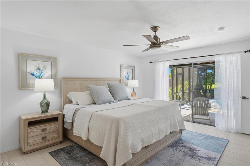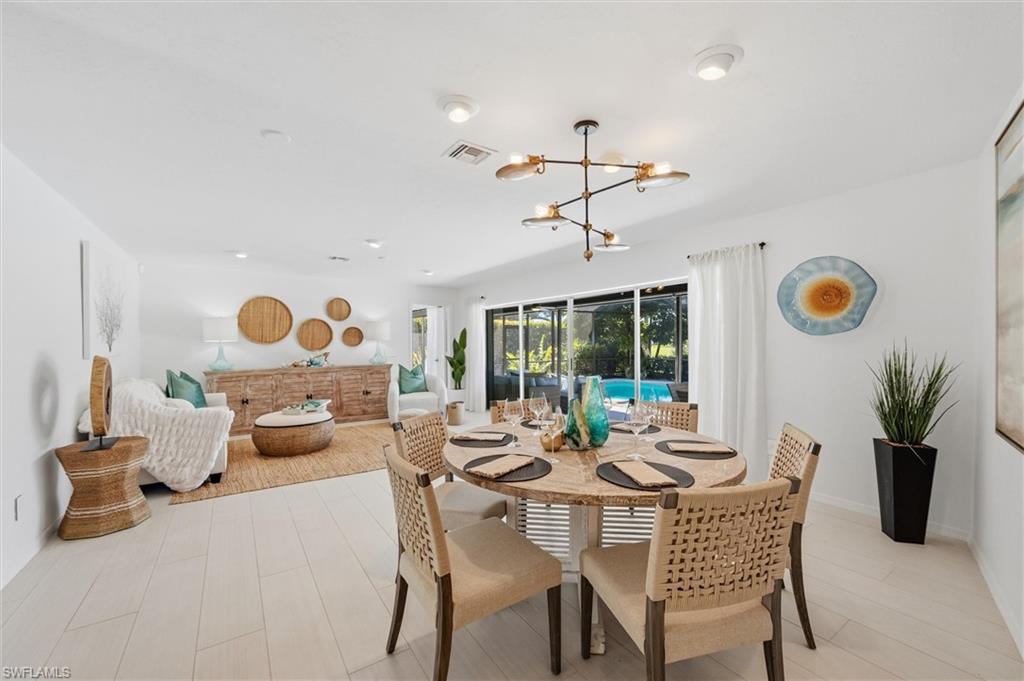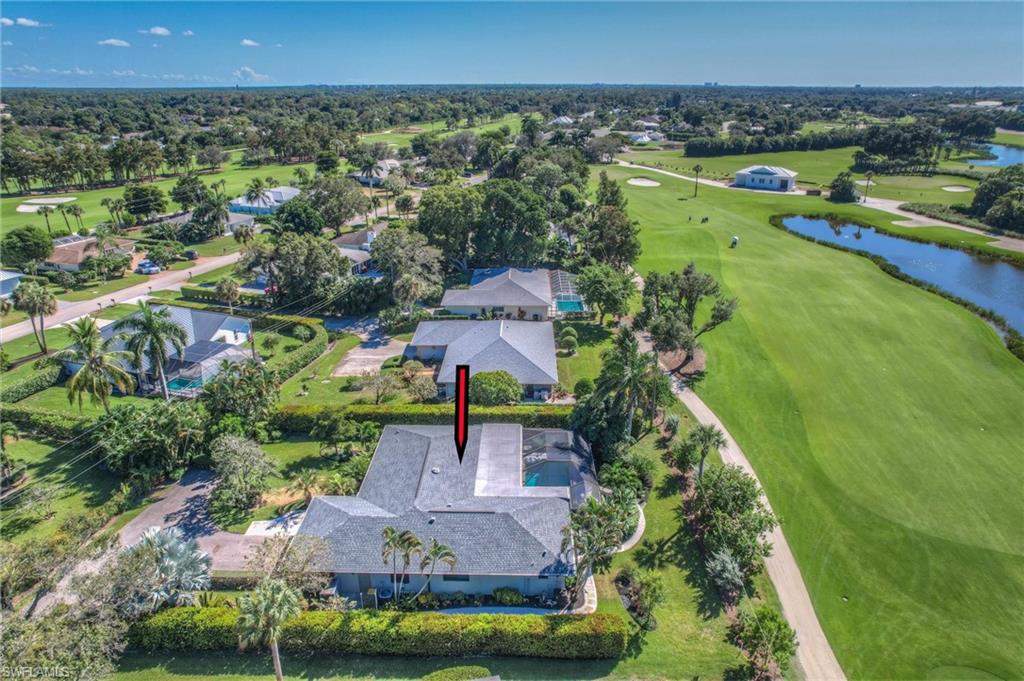 Positioned on one of the most desirable oversized corner lots in Big Cypress Golf and Country Club Community, this updated 3-bedroom, 2-bath pool home offers an exceptional combination of privacy, location, and value in the heart of Naples. Set back from the street with its own private driveway—one of only a few homes in the community with this distinction—the property enjoys a quiet setting, mature landscape design, and open golf course views rarely available in this neighborhood. The interior layout includes formal living and dining areas overlooking the screened pool and lanai, a redesigned kitchen with quartz countertops, custom cabinetry, and high-end stainless steel appliances, plus a comfortable family room. One bedroom functions perfectly as a home office or flex space, ideal for today’s lifestyle. Recent improvements include remodeled bathrooms, upgraded lighting and electrical, impact-resistant windows, a newer roof, and a spacious laundry and pantry area. The large screened lanai—partially covered for outdoor dining and relaxation—creates a private retreat surrounded by lush greenery and long golf course views. Located just around the corner from The Country Club of Naples, Vanderbilt Beach and minutes to downtown. Surrounded by high-end new construction, this property stands out for its privacy, quality, and central Naples address with an optional HOA. Homes with this combination of lot position, design, and condition are rarely available—schedule your private showing today. Professionally staged by K & A Coastal Design—furnishings are available for purchase for a truly turnkey experience.