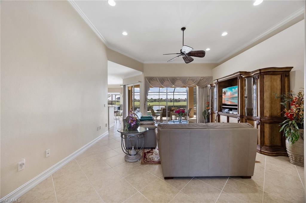 Sunlight, sweeping water views and endless outdoor enjoyment define this exceptional home in Masters Reserve. Positioned at end of a quiet cul-de-sac, this oversized pie-shaped lot lines up the most prized combination in Lely Resort: long-lake vistas paired with the backdrop of rolling golf course grounds. Every moment outdoors feels like a private postcard. Go inside and the experience continues to stretch outward. Wide sliders open the main living spaces directly to the lanai, making the outdoors a natural extension of everyday living. The popular Augusta layout delivers comfortable flow and effortless privacy with three bedrooms, two baths and a spacious two-car garage. Outside is where this home shines. A large covered outdoor living area invites year-round dining and lounging, all cooled by gentle breezes from the water. The heated pool and spa transform relaxation into a daily ritual, while southern exposure bathes the entire setting in warm natural light from morning to sunset. Entertaining feels easy, serene mornings feel sweeter, and every view is a reminder of why you chose Southwest Florida. Ownership includes optional membership to the award-winning Player’s Club & Spa, offering resort-style pools, multiple dining options, a modern fitness facility, spa services and every game you could imagine including tennis, pickleball, and bocce. Social events, friendly neighbors and modest HOA fees round out a lifestyle that feels like vacation. A rare offering of space, sunshine and scenery. Experience the outdoor Florida living you’ve been dreaming about in the heart of Lely Resort.
