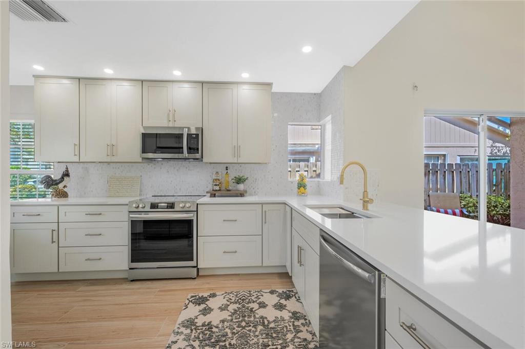 COMPLETELY RENOVATED LAKESIDE VILLA WITH EXPANSIVE SOUTHERN VIEWS! Experience lakeside living at its finest in this beautifully renovated two-bedroom, two-bath attached villa in the desirable community of Lakeside. Enjoy stunning southern exposure overlooking one of Naples' largest and most picturesque lakes, offering tranquil water views and spectacular sunsets. This move in ready villa is offered furnished and features a modern open layout, vaulted ceilings, stylish modern finishes and abundant natural light. The kitchen showcases all new cabinetry, quartz countertops, and stainless steel appliances, while both baths have been completed redesigned with todays upscale finishes. This neighborhood is a gated community is in an excellent location close to everything Naples has to offer, including beach access, shopping, dining, golf, entertainment. A perfect blend of modern comfort, coastal tranquility, and convenience, this villa is ready for you to enoy from day one. Low quarterly maintenance fees! Single family ownership.