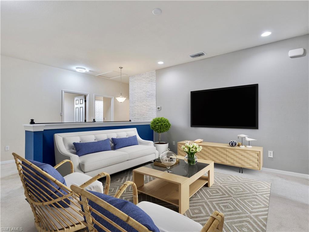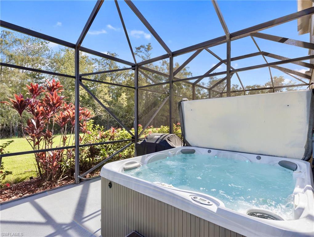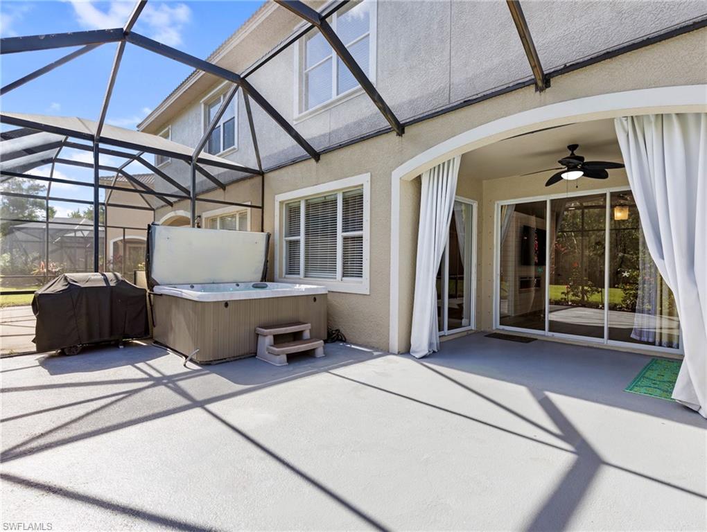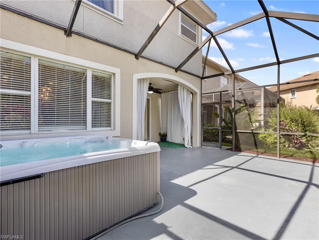 This 2,200+ sq. ft. twin townhome is as nice as they come, in absolute pristine condition! Featuring 3 bedrooms plus a spacious loft and 2.5 baths, this home sits on one of the community’s most desirable lot, nestled on a quiet cul-de-sac with an extra-long driveway, rare private preserve views, and exceptional privacy. The thoughtfully designed floor plan features upgraded LVP flooring throughout the first-floor living areas, an accent wall with shiplap detailing and electric fireplace, electric vehicle charger, and more. Enjoy a refreshing cross-breeze from the screened front entry or unwind in the oversized extended screened lanai complete with a relaxing hot tub. Additional highlights include abundant storage, a two-car garage with overhead storage racks, upgraded high-speed ceiling fans and light fixtures throughout, and an A/C system approximately 5 years old. The master suite is unmatched, offering an adjoining oversized walk-in closet and abundant natural light. Conveniently located in close proximity to the resort-style clubhouse and amenities, and situated in a desirable NON-FLOOD ZONE, this home perfectly combines comfort, privacy, and an exceptional lifestyle setting. Bella Terra has something or everyone with very reasonable HOA Fees with extensive exterior maintenance and amenities galore!! Take advantage while you can, this home is well priced and offers a Single Family feel without all of the hassles and expenses of owning a single home. Perfect for small family or Winter retreat. Bella Terra is nestled on 999 acres, with half the community dedicated to lakes/preserves and home to a variety of native Florida wildlife. Features include a Resort-style Clubhouse, 24-hour fitness center, activities for all ages, resort-style pool and spa, shaded children's play area, tennis courts, pickle-ball, bocce ball, sand volleyball, multi-use sports fields, tranquil butterfly garden, exercise trails and more. Call today and schedule your private showing appointment