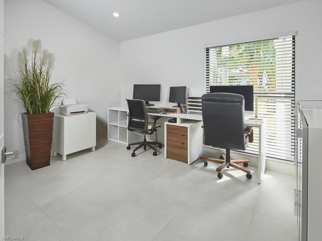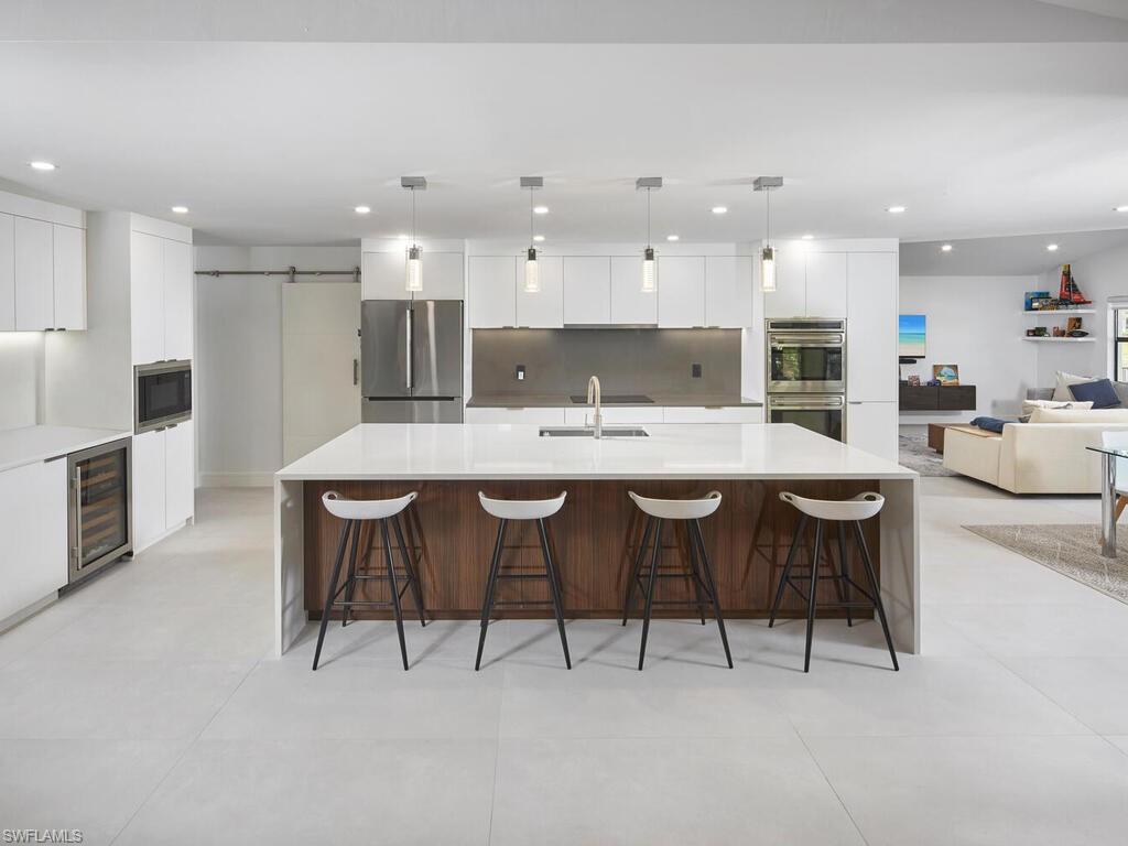Golden sunsets, tranquil lake views, and a coveted Monterey address define this exceptional Naples residence sits on 1/3 acre. Ideally situated on a private cul-de-sac, captures stunning southwestern lake views in one of Naples’ most desirable gated communities. An oversized lanai invites relaxed outdoor living and sunset entertaining, with ample space to add a pool. Inside, vaulted ceilings and expansive glass bathe the home in natural light, enhancing the open living and dining areas with tranquil water and garden views. Luxury Italian tile flows throughout, complementing a thoughtful layout that includes a spacious primary suite, three additional bedrooms and a private study, formal living and dining rooms, and flexible spaces designed for effortless living—ideal for families of any size, guests, or work-from-home needs. Completely renovated in 2021, the home was reimagined from top to bottom, with the chef’s kitchen emerging as a centerpiece of the transformation. It features refined stone countertops, custom cabinetry, a generous island, and premium appliances including a Wolf induction cooktop and oven, Bosch refrigerator, Miele dishwasher, and Sub-Zero wine refrigerator. Additional updates include a new roof & A/C in 2021, the garage floor was epoxied & a new water heater added in 2025. The landscaped backyard enjoys desirable southwestern exposure and an approximate elevation of 13.13 feet, offering added reassurance during storm season. Monterey delivers an exceptional lifestyle with a renovated clubhouse, fitness center, three Har- Tru tennis courts, pickleball and basketball courts, playground, billiards, and a resort-style heated pool with cabanas. Conveniently located near top-rated schools, just two miles from Mercato, in close proximity to the beach, and minutes to Naples’ finest shopping, dining, and cultural destinations. A rare opportunity to own a bright, coastal-inspired home with captivating lake views.