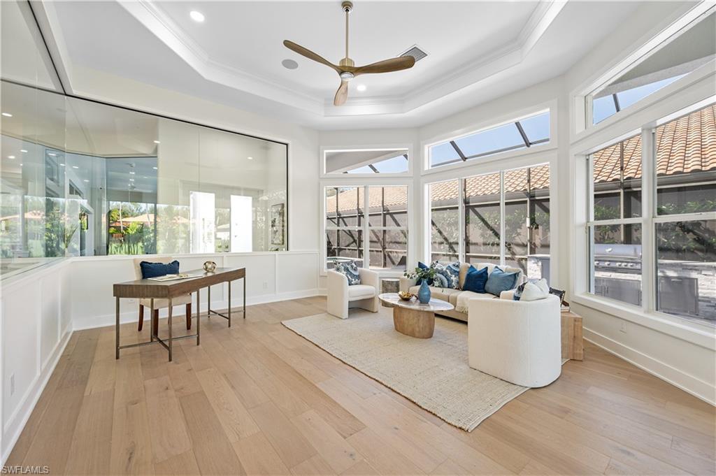 Experience the pinnacle of modern luxury overlooking the golf course in Olde Cypress. This fully renovated estate from top to bottom, located at 3133 Terramar Drive blends contemporary design with timeless elegance and high-end craftsmanship throughout. Step inside to discover 3 bedrooms + private den/office, including a detached casita with full bath, perfect for guests or extended family. Every space has been reimagined with engineered white oak flooring, solid wood doors with detailed moldings, designer lighting that creates an inviting, sophisticated atmosphere. The gourmet, top of the line kitchen is a showstopper, featuring Thermador appliances, a dry bar with wine and beverage coolers, and custom cabinetry. Spa-inspired bathrooms and a stunning custom laundry room with premium built-ins complete the interior transformation. Enjoy seamless indoor-outdoor living with surround sound, recessed lighting, and large sliders opening to your resort-style lanai showcasing marble pool decking, a resurfaced pool, and a designer outdoor kitchen with bar seating overlooking the golf course. Additional upgrades include: Newer roof, Whole-house water softener, reverse osmosis system, Fresh interior/exterior paint, professionally landscaped grounds with designer up-lighting, 3-car garage, ideal for a private golf cart. Residents of Olde Cypress can enjoy a recently renovated clubhouse, with the best of the best amenities, no dining minimums or assessments, and a vibrant, private golf club lifestyle just minutes from the best of Naples. 3133 Terramar Drive where modern sophistication meets the art of living well. Community Amenities: Residents enjoy access to clubhouse, formal/casual dining, championship PB Dye golf course, Har-Tru tennis and pickleball courts, bocce courts, a putting green, driving range and a state-of-the-art manned fitness center, all without member assessments or food/drink minimums. Golf membership is optional, making Olde Cypress one of Naples’ most flexible and desirable private gated golf communities.