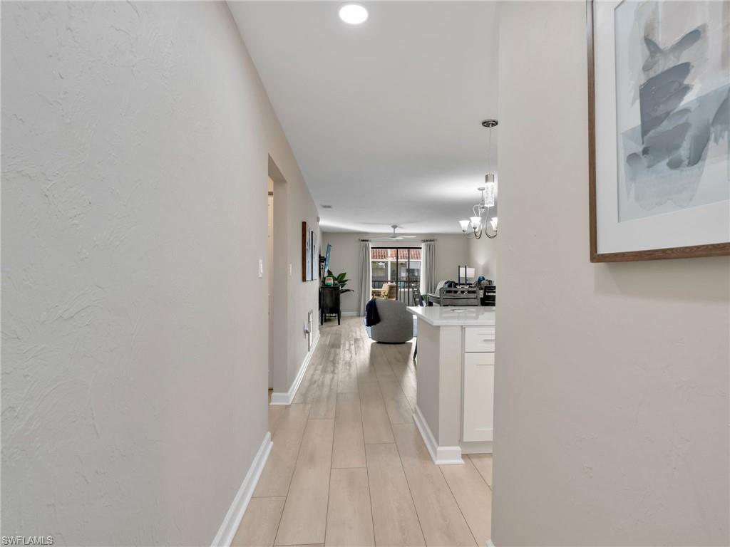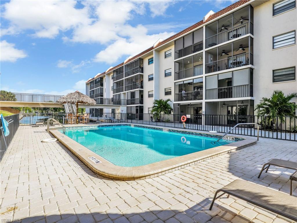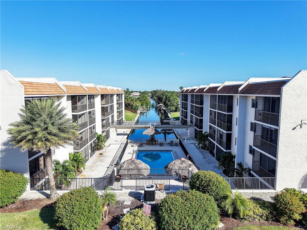 A boater’s dream come true—this exquisite third-floor residence sits directly on a canal with Gulf access and available boat docks for owners. Every inch of this upper-end unit has been luxuriously updated, blending modern sophistication with serene waterfront living. Completely renovated in 2023, the home features raised ceilings—an exclusive design element that can only be accomplished on third-floor units—and luxury vinyl tile flooring throughout. The stunning kitchen showcases gleaming quartz countertops, beautiful white soft-close cabinetry with tray pullouts, under-cabinet recessed lighting, and premium GE Profile appliances replaced in 2023. Elegant touches continue throughout, including new ceiling fans (2023), a new entry storm door (2023), and a new air conditioning system (2023). The washer and dryer were replaced in 2025 for added convenience. The primary suite offers a serene retreat with a custom built-in closet system, a lighted vanity mirror, and elegant quartz countertops. Every detail reflects quality and taste. Step out onto the spacious lanai and take in breathtaking views of the canal and marina. Enjoy morning coffee or sunset cocktails at the custom-built outdoor breakfast bar while admiring the natural beauty of the waterfront. This home offers the perfect combination of luxury, comfort, and an unparalleled waterfront lifestyle—truly an exceptional opportunity for the discerning buyer.