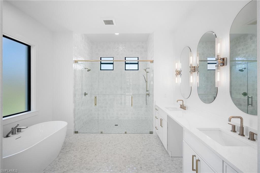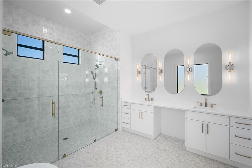 Introducing the BayBreeze Grand by BayBeach Builders! This stunning, brand new 4 bedroom + den, 3 bathroom home sits on an oversize lot (.91 acres) and has impact windows and doors, a tile roof, 3 car garage and large paver driveway. Professionally designed by Blue Haven Interiors, no detail was overlooked. The 10-foot double doors provide a grand entrance to the thoughtfully planned 2,803 square foot space. Features include shaker cabinets, a large kitchen island, quartz countertops with waterfall edge, LG appliances, a wet bar and 8 foot solid core doors. Enjoy outdoor living with a covered lanai overlooking the large backyard and peaceful preserve. The spacious southern exposure lot offers plenty of room for a pool and outdoor kitchen. Trieste Preserve is a private enclave of only 14 single family homes conveniently located near downtown Bonita Springs, world class beaches, shopping, dining, golf courses and I-75.