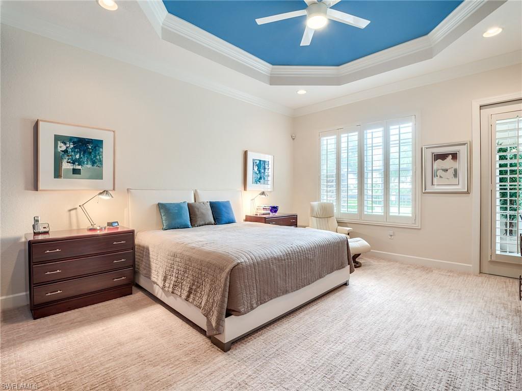 2ND-FLOOR COACH HOME WITH STUNNING LAKE & SUNSET VIEWS! Price reduced by $86,000! This beautiful Dorchester floor plan in Merano at The Colony offers 2,748 sq. ft. with 3 ensuite bedrooms, a den, and flex room. Enjoy a grand entry with blown-glass chandelier, split-bedroom design, and Juliet balcony for guest privacy. The chef’s kitchen features quartz counters, island, custom rollouts, wet bar, and plantation shutters. All baths have quartzite counters. The lanai’s western exposure captures serene lake views, vibrant wildlife, and colorful sunsets—one of the best views in Merano! Upgrades include advanced A/C, premium carpet, oversized 2-car garage, and private elevator. Merano has new roofs, paint, and lighting. The Colony offers Bay Club waterfront dining, private beach park, fitness, tennis, pickleball, kayak launch, and optional golf. Storm-resilient area with no storm damage.