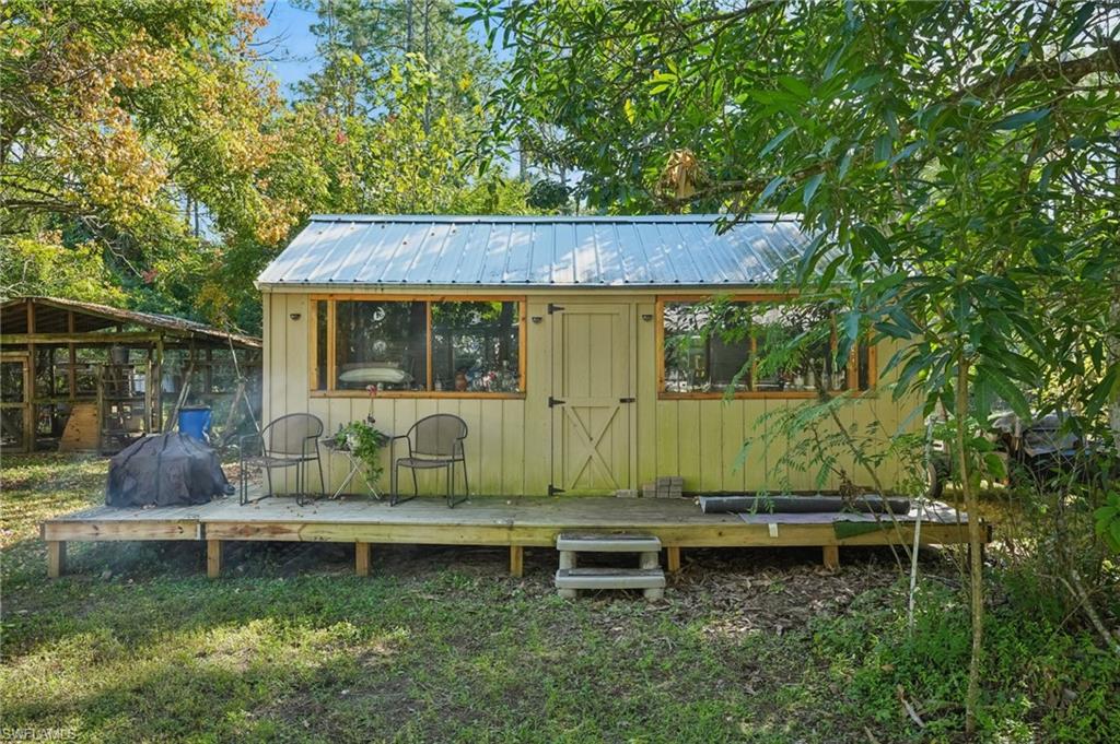 Distinctive 2-story A-frame on 2.73 acres in Golden Gate Estates, fully fenced with gated entry and dual access/frontage on Jung Blvd E and 16th Ave NE (near Randall Blvd/16th St NE). The 2+BR/2BA layout features durable tile on the main level, carpet upstairs, and ceiling fans throughout. A metal roof adds peace of mind, while the spacious kitchen anchors the living area for easy everyday flow. Outdoors, enjoy a wood deck, mature fruit trees, two storage sheds, and ample space for a future pool, bring your RV/boat and toys. Room to spread out with the convenience of nearby commuter routes.