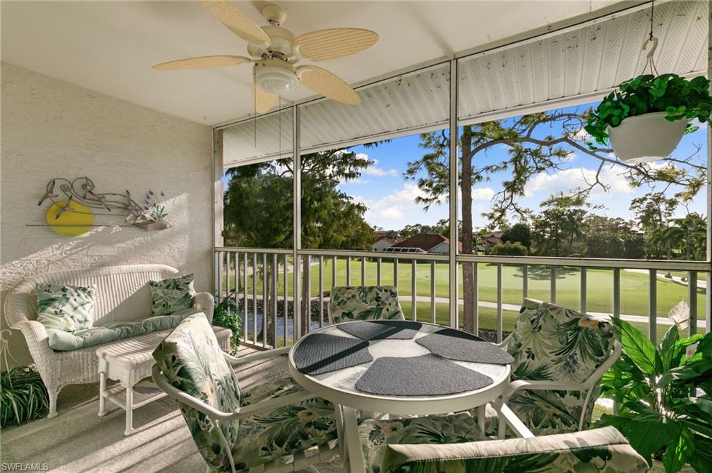 Rarely Available Top-Floor End Unit with Stunning Lake & Golf Course Views! One of only eight top-floor end units in Amherst Cove at Royal Wood Golf & Country Club, this beautifully maintained 3BR/2BA turnkey-furnished condo offers the perfect blend of comfort, style, and resort living. Step inside to find an updated eat-in kitchen with granite countertops and stainless steel appliances, opening to an expansive living and dining area with soaring vaulted ceilings. The spacious owner’s suite features a king-size bed, an updated ensuite bathroom, and a generous walk-in closet. Relax and unwind on your private screened lanai, where you’ll enjoy serene southwest views of the creek and golf course—a perfect spot for morning coffee or sunset cocktails. Residents of Amherst Cove enjoy access to their own clubhouse for gatherings, plus a pool and spa, tennis, and bocce courts. At Royal Wood Golf & Country Club, you’ll find Naples’ best-kept secret: a welcoming community offering immediate golf membership, tennis, pickleball, bocce, swimming, fitness center, clubhouse dining, and a full calendar of social events and activities. Discover the lifestyle you’ve been waiting for—right here in Royal Wood!