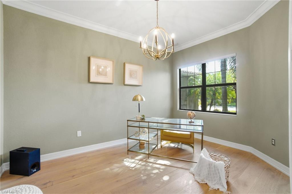 Experience the pinnacle of luxury living in this impeccably appointed 3+Den, 2.5 bath single-level residence, gracefully situated on a quiet cul-de-sac within the exclusive gated enclave of Stonecreek. This home is a masterpiece of refined design and modern functionality, offering a seamless blend of elegance, comfort, and craftsmanship at every turn. The heart of the home showcases a chef-inspired kitchen adorned with custom cabinetry, polished granite countertops, and top-tier stainless steel appliances, including a gas range. A spacious breakfast bar anchors the open layout, creating a perfect balance between form and function. The open-concept great room exudes sophistication with abundant natural light and effortless flow—ideal for both intimate gatherings and grand entertaining. Retreat to your private outdoor sanctuary where a screened lanai opens to an extraordinary heated pool and spa, featuring remote-controlled color illumination and dancing water fountains that create a captivating ambiance. The outdoor kitchen and bar transform this space into an entertainer’s dream, while the tranquil water view evokes a true sense of serenity. Designed with distinction and built with integrity, this residence includes impact-resistant doors and windows, offering peace of mind and enduring quality. As a resident of Stonecreek, indulge in resort-caliber amenities that rival a private country club: a grand clubhouse with indoor and outdoor basketball courts, pickleball and tennis courts, a resort-style pool and water park, children’s playground, and sand volleyball court. Every element of this remarkable home reflects a commitment to luxury and lifestyle—where timeless sophistication meets contemporary Florida living in one of Naples’ most sought-after communities.