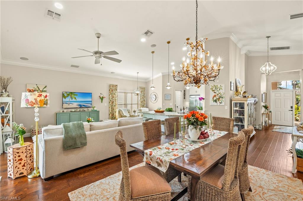 Step into paradise with this beautifully appointed single-family home in the sought-after Glen Eagle Golf & Country Club. Featuring two spacious bedrooms, a versatile den, and two completely upgraded bathrooms, this residence exudes designer-level sophistication at every turn. From the moment you enter, you’ll be captivated by the soaring cathedral ceilings, elegant, engineered wood flooring, custom base trim, and oversized crown molding. The chef-inspired kitchen showcases 42” custom maple cabinetry, Taj Mahal quartzite countertops, and thoughtful designer finish throughout — crafted by the homeowner, a professional interior designer. Recent updates include a new tile roof, air conditioner, water heater, and a whole-house standby generator for total peace of mind. Both the primary and guest bathrooms have been beautifully renovated with a refined, modern aesthetic. Step outside and unwind with evening cocktails on the expanded lanai, the perfect setting for relaxing or entertaining. This property includes a social membership, allowing golf play from May through November, along with full access to tennis and a recently updated state-of-the-art fitness center. All of this located just under 4 miles from Fifth Avenue South, moments from upscale dining, art galleries, and the world-renowned Gulfshore beaches. This is more than a home — it’s a lifestyle