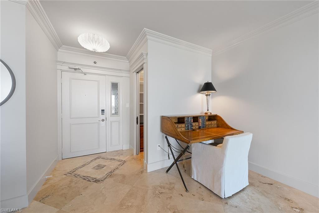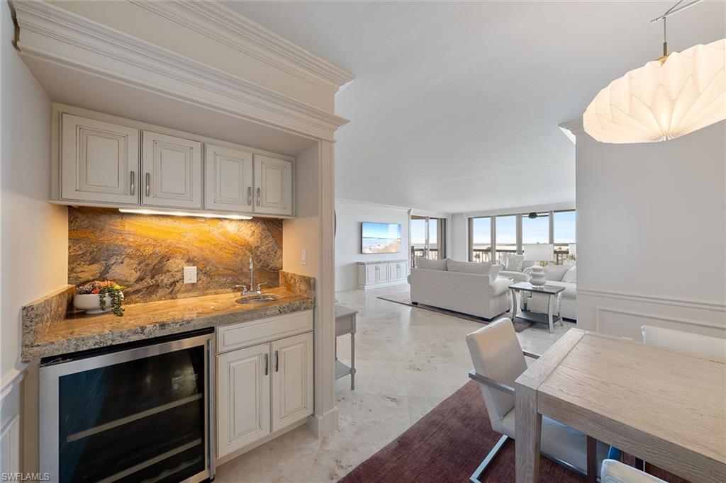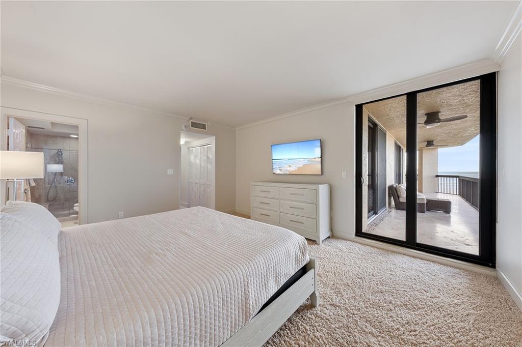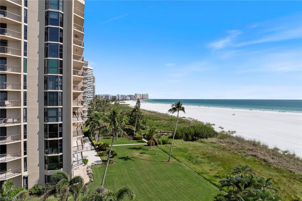 Experience the best of Marco Island living in this beautifully updated and turnkey two-bedroom, two-bath condominium offering over 1,900 total square feet of refined coastal elegance. Enjoy uninterrupted, protected views of the Gulf of Mexico from your expansive wraparound terrace. Go inside to a spacious living room, where floor-to-ceiling glass doors seamlessly blend indoor and outdoor living, filling the space with natural light and breathtaking scenery. Both bedrooms are thoughtfully positioned to face the water, each featuring private access to the terrace, ideal for savoring evening sunsets. The large dining area, complemented by a stylish wet bar and wine fridge, sets the stage for effortless entertainment. An open kitchen boasts ample storage, generous counter space and a secondary hallway door for added convenience when unloading groceries. Additional highlights include in-unit laundry, amazing natural light and a separate storage closet for added storage. In the prestigious Princess del Mar, this full-amenity building offers a full-size lap pool, hot tub, beach access, barbecue grills, fitness center, billiards room, tennis and pickleball courts, and a guest suite available by request. One covered garage parking space # 42 and storage # 504 included. In an unbeatable, walkable location, you’ll enjoy dining next door at Resident’s Beach or just a short distance to the Marriott. This unique residence offers a blend of privacy, protection and convenience.