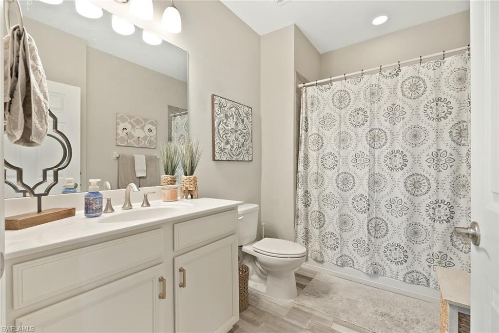 Welcome to Paloma! This beautifully maintained 2-bedroom plus den, 2-bath carriage home located in the gated community of Paloma in Bonita Springs. Enjoy peaceful lake views from this first-floor unit featuring numerous upgrades, including vinyl flooring, crown molding and custom trim work, and plantation shutters throughout. The spacious open floor plan offers a modern kitchen with granite countertops and stainless steel appliances. The primary suite includes a spacious closet and an en-suite bath with dual sinks and a walk-in shower. Relax on the screened lanai with an electric hurricane screen for added protection and comfort. Paloma offers resort-style amenities including a clubhouse, pool, fitness center, tennis, and bocce courts. Conveniently located just a short drive from shopping, dining, and Gulf Coast beaches.
