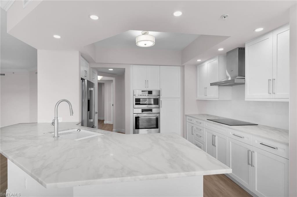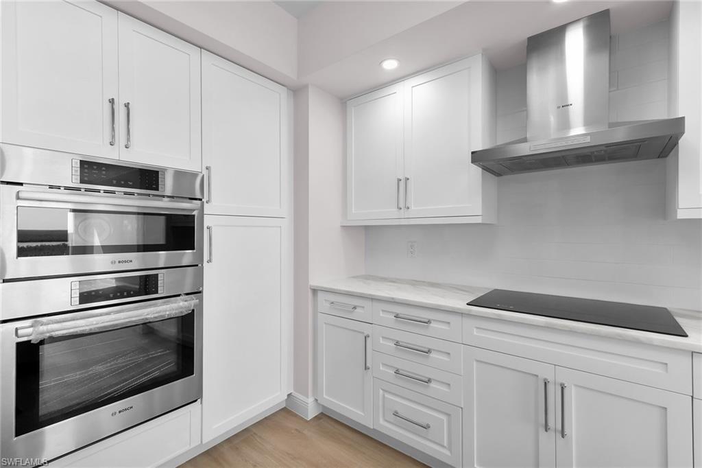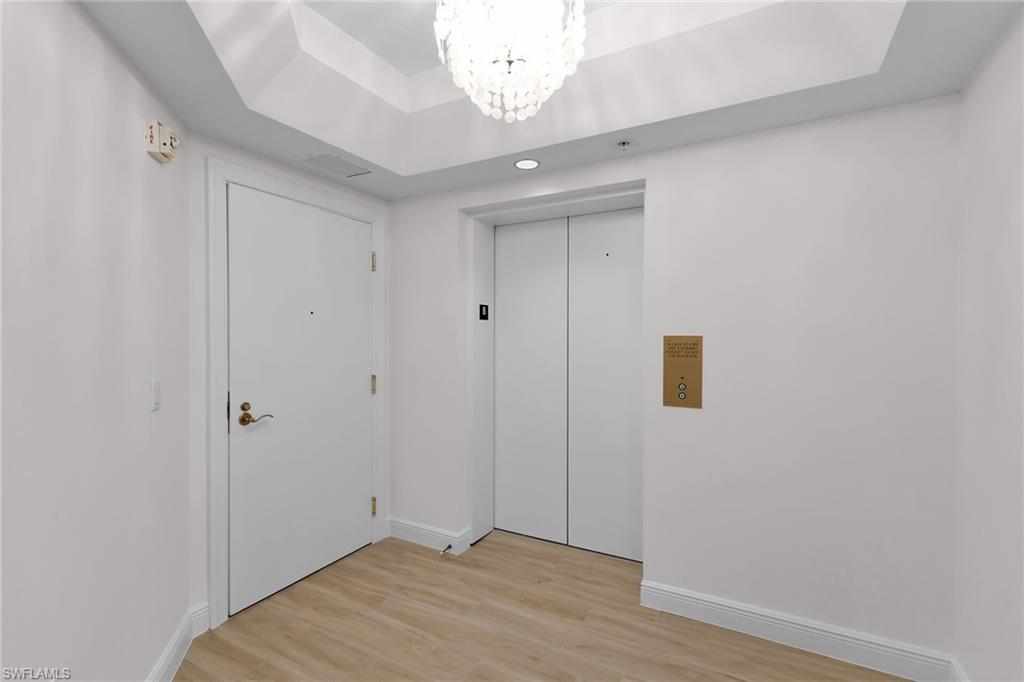Step into this stunning 3-bedroom, 3.5-bath residence in Hammock Bay Golf & Country Club, where spectacular long water views meet modern elegance. Ceramic flooring by Ehlen flows throughout, accentuated by freshly painted white walls that create a bright, pristine canvas ready for your personal touch. The open-concept kitchen features marble countertops, all-new Bosch appliances, and abundant cabinetry, illuminated by natural light and overlooking lush tropical vegetation for a tranquil, spa-like ambiance. The luxurious primary suite includes a spacious soaking tub and elegant bathroom finishes, while the well-appointed laundry room offers custom cabinetry for added convenience. A private elevator opens directly into your home. An array of resort-style amenities: a welcoming modern lobby, billiards and grand sitting rooms for entertaining, a state-of-the-art fitness center, and a plush movie theater. Outdoors, enjoy a lap pool, hot tub, and cabana social area perfect for gatherings. Join the Social/Beach Club waitlist to gain access to beach privileges, off-season golf, bocce, and vibrant social activities. The on-site tiki bar is open to all—offering great food, friendly faces, and refreshing cocktails. Ideally situated between Marco Island and Fifth Avenue Naples, this pristine condo combines luxury, comfort, and the best of coastal living in one remarkable package.
