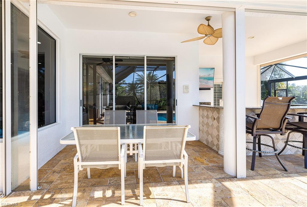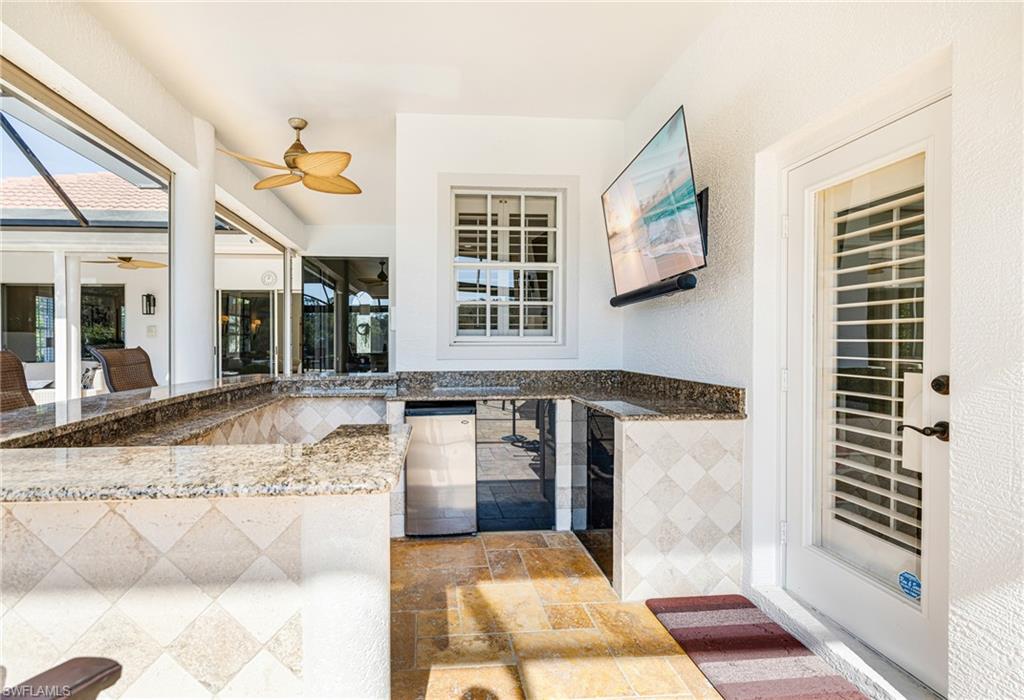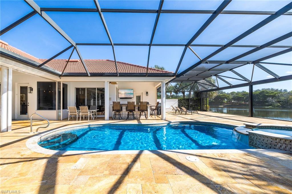 Experience exceptional Southwest Florida living in this beautifully designed 4-bedroom, 3-bath Sterling floor plan, perfectly positioned to capture panoramic water and preserve vistas that create a sense of total privacy. Step outside to an expansive screened lanai crafted for effortless indoor–outdoor living, complete with a custom bar, full outdoor kitchen, gas-heated pool and spa, and wide picture-window screening that frames postcard-worthy views—ideal for sun-soaked afternoons or evening gatherings under the stars. Inside, the home flows easily from a spacious family room to a well-appointed kitchen featuring a generous work island, built-in refrigerator, breakfast bar, and abundant cabinetry. The peaceful owner’s suite includes a sitting area and an updated bath with refined finishes and a frameless walk-in shower. Quality touches are found throughout with wood, tile, and carpeted flooring, tray ceilings, crown molding, arched architectural accents, plantation shutters, designer lighting, tankless hot water heater, electric storm protection, and impressive curb appeal. For those seeking a vibrant and enriching lifestyle, optional memberships expand the experience far beyond the home. Shadow Wood offers three 18-hole championship golf courses, nine Har-Tru tennis courts, three bocce courts, and miles of beautifully landscaped pathways ideal for biking or leisurely evening strolls. Exciting enhancements are underway, including a resort-style pool, dedicated children’s pool, six indoor pickleball courts, and poolside food and beverage service. The Commons Club adds another dimension with private beach access, an exclusive beach pavilion, a staffed fitness center with classes and personal training, additional pickleball, a lap pool, spa and massage services, social activities, playground, and a members-only restaurant. All of this comes together in a prime location near Coconut Point, Miromar Outlets, Hertz Arena, Gulf Coast Town Center, premier medical facilities, white-sand beaches, renowned dining, and RSW Airport—placing the best of Estero and Bonita Springs at your fingertips.