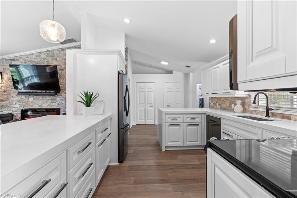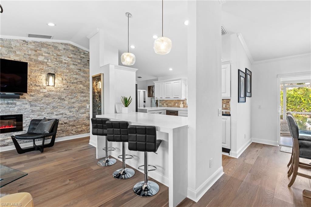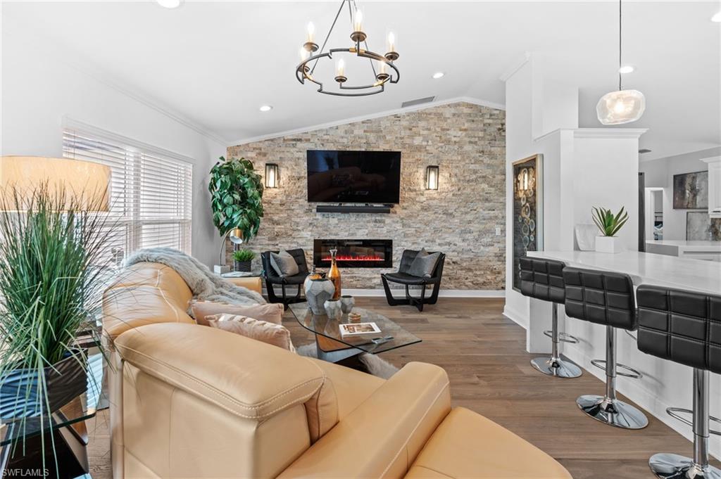 HAVE A NEW HOME FOR THE HOLIDAYS....Welcome to this beautifully renovated 3 bedroom, + DEN perfectly suited as a home office or flex space. Ideally located in the heart of Marco Island, this single-level coastal retreat combines timeless style with modern finishes and functionality. Step inside to an open, light-filled layout with" high ceilings" and warm wood flooring throughout, modern brick wall with electric fireplace creating designer look, open an airy and inviting atmosphere. The gourmet kitchen features white shaker cabinetry, QUARTZ countertops, ACCENT BRICK BACKSPLASH stainless steel appliances, and 2- breakfast bars, that flows seamlessly into the main living and dining areas — perfect for entertaining or everyday living... The primary suit offers a peaceful retreat with a walk-in closet and updated bath, while two guest bedrooms and the den provide ample space for family, guests, or remote work. Enjoy the best of Florida outdoor living with a screened lanai and spacious backyard, ideal for lounging, grilling, or adding a future pool. Recent updates include impact-resistant windows, a newer roof (2018), A/C (2023),front door(2025) and hot water heater (2018) for worry-free ownership. Located on a quiet street just minutes from Marco Island’s world-famous beaches, dining, and shopping, this home offers NO HOA, excellent"" RENTAL"" potential" "before one retires, and true move-in-ready comfort —FURNISHINGS Negotiable the perfect blend of coastal style and everyday convenience. ""LOCATION, Location" "WALK"" or""BIKE""to beach, shopping and restaurant's" "OR PRIVATE BEACH INCLUDES OUT DOOR RESTAURANT!!!!!must see LETS MAKE A DEAL !!!TODAY!!!