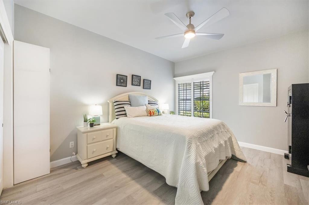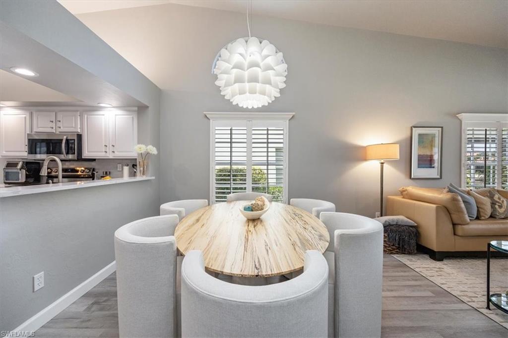 Elegantly poised in the prestigious enclave of North Naples, this meticulously renovated two-bedroom, two-bath villa epitomizes refined Florida luxury. Upon entering, you’re greeted by soaring vaulted ceilings, tasteful new flooring, freshly painted interiors, recently insulated attic, and an abundance of natural light that cascades through stunning plantation shutters. The gourmet kitchen, a culinary enthusiast’s haven, boasts premium stainless steel appliances, gleaming quartz countertops, stylish two-tone cabinetry, and a chic subway tile backsplash—all thoughtfully designed to seamlessly flow into the spacious, open living areas, ideal for entertaining guests or unwinding in sophisticated comfort. Step onto the serene lanai, where captivating, panoramic lake views framed by lush palms provide an exquisite backdrop for tranquil moments, enhanced by the convenience and security of an electric storm shutter. The luxurious primary suite, accentuated by an elegant bay window, offers a tranquil retreat complete with a lavish en-suite bathroom illuminated naturally by an inviting skylight, dual vanities, a soaking tub, and a separate glass-enclosed shower. Additional high-end upgrades include a pristine newer tile roof, upgraded air conditioning system, a modern water heater, and charming new paver driveway, further enhancing this villa’s impeccable curb appeal. Situated within a community renowned for its exceptional amenities, residents enjoy exclusive access to a resort-style pool, newly installed illuminated pickleball courts, a tennis court, an inviting community room, and scenic walking paths perfect for leisurely strolls. This exquisitely appointed villa offers not merely a residence, but a luxurious Naples lifestyle—an unmatched opportunity for those seeking elegance, serenity, and convenience at its finest.