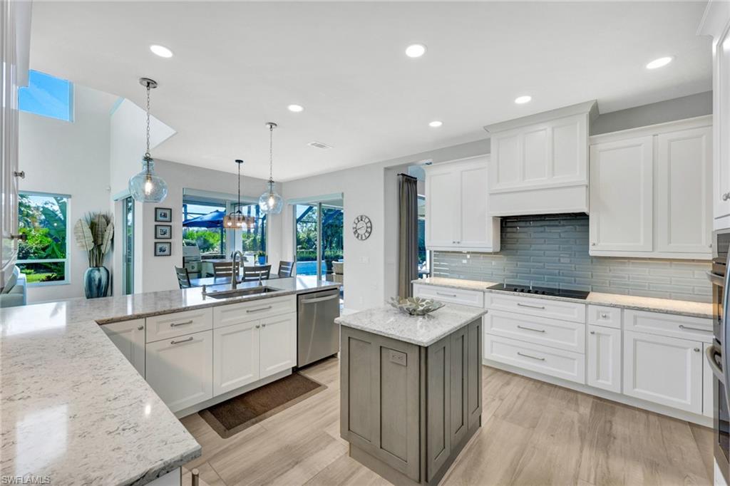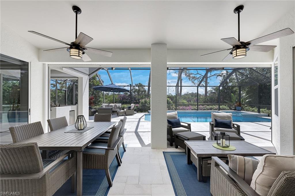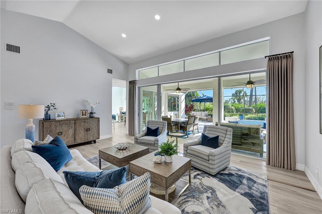 From the moment you arrive, this residence invites you to unwind. On a quiet street in the Goldcrest neighborhood of Pelican Landing, the home blends architectural sophistication with everyday comfort and versatility. For those seeking to downsize without letting go, the layout offers the ideal solution, such as main-level living designed for daily ease, complemented by a private upper level tailored for hosting family or long-term guests. Serene views unfold from the upstairs loft, capturing lush gardens, expansive grounds and full vistas of the golf course, while the main level is framed by tropical foliage and a resort-style pool and spa. A peaceful backyard retreat offers the ideal setting for morning coffee, time with pets or children, or evening gatherings. The home features a three-car garage, impact-resistant windows and a dedicated EV charging circuit. Its flexible layout includes four bedrooms, a den and five baths, three full and two half. Interior upgrades include a redesigned kitchen and guest baths, wood-look tile throughout the main level and oak flooring upstairs. The primary bath was remodeled in 2020, followed by a full interior transformation from 2021 to 2025. Additional enhancements include a resurfaced pool with leathered marble pavers and updated driveway and walkway pavers. As a resident of Pelican Landing, enjoy access to a 34-acre private island beach park, canoe and kayak park, tennis and pickleball, sailing, a state-of-the-art fitness center, and optional memberships at The Nest Golf Club or The Colony.