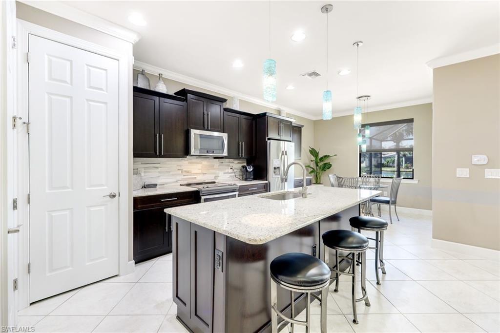 Welcome to your dream retreat! This elegant 3-bedroom + den home boasts a seamless blend of comfort and sophistication. The open-concept design is adorned with exquisite lighting fixtures, enhancing the home’s warm and inviting ambiance. Each bedroom offers generous space, while the versatile den provides the perfect setting for a home office, library, or guest room. Step outside to your private oasis! The sparkling pool and spa invite you to unwind and bask in tranquility, surrounded by lush landscaping. Entertain with ease in the outdoor summer kitchen, complete with high-end appliances, sink and countertop ideal for hosting gatherings. From the carefully curated details indoors to the luxurious outdoor living space, this home is the epitome of modern elegance and timeless charm. Don’t miss the opportunity to make this spectacular property yours! Residents at the Preserve at Corkscrew will enjoy numerous amenities for social and sport activities including a clubhouse with resort-style pool & spa, pickleball, tennis, basketball court, fitness center, outdoor fireplace & a gated children's playground.