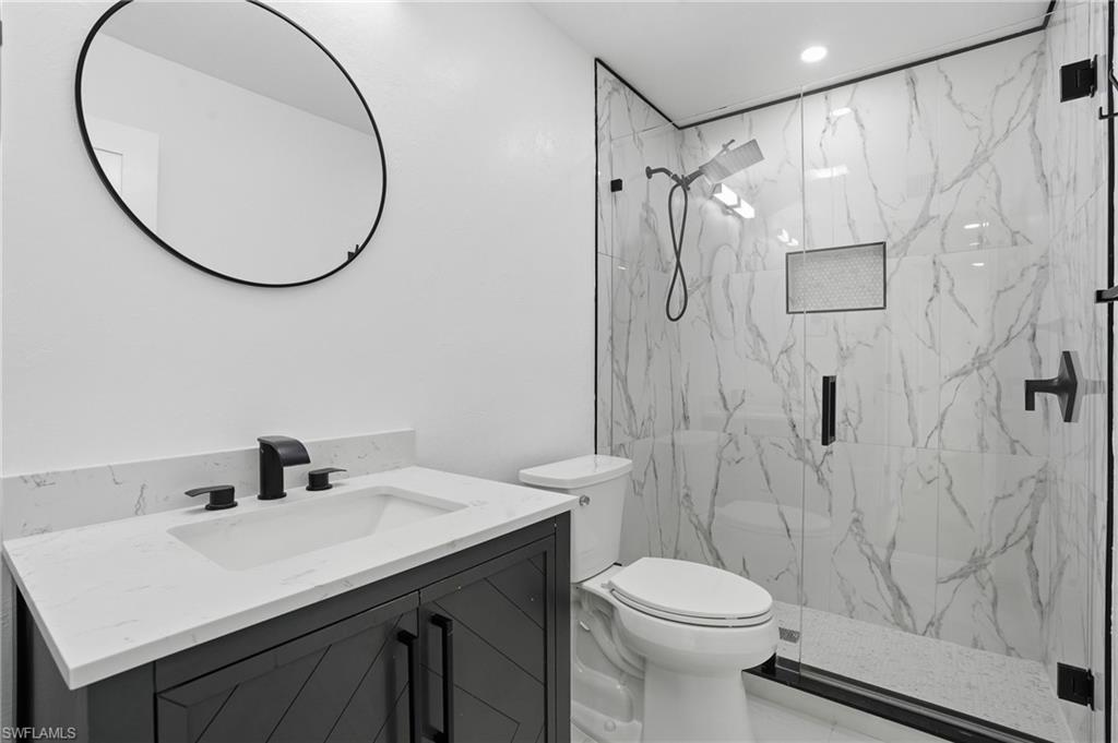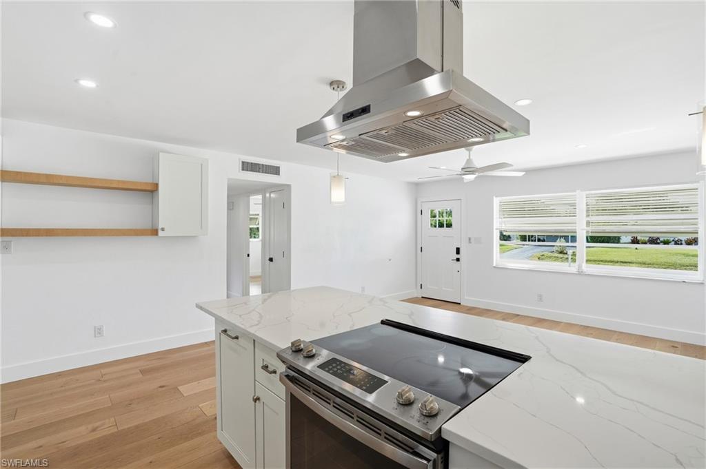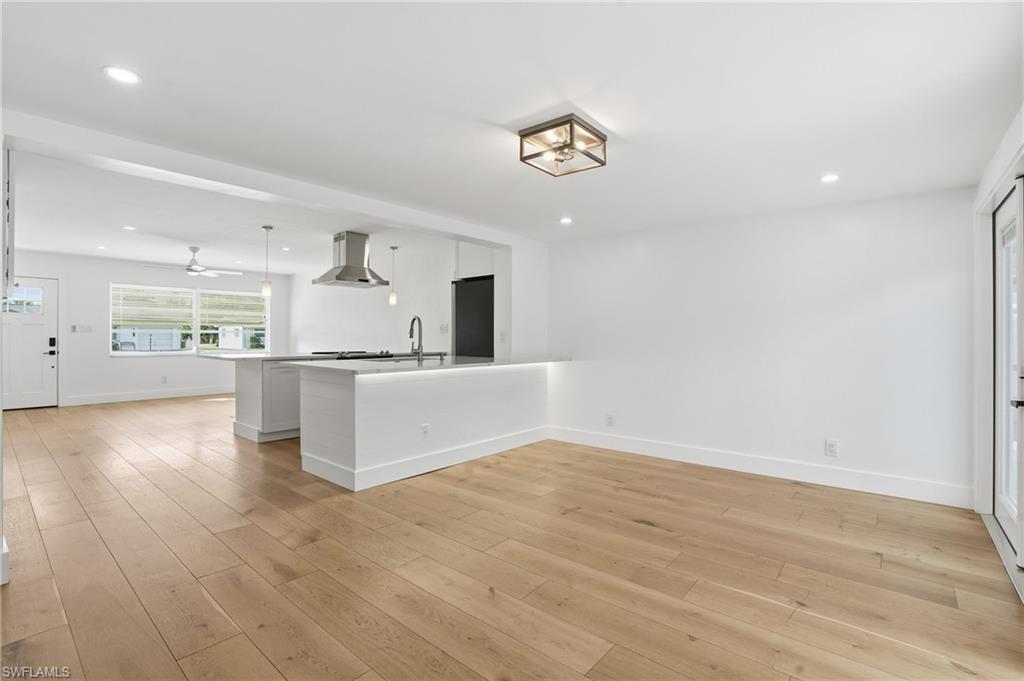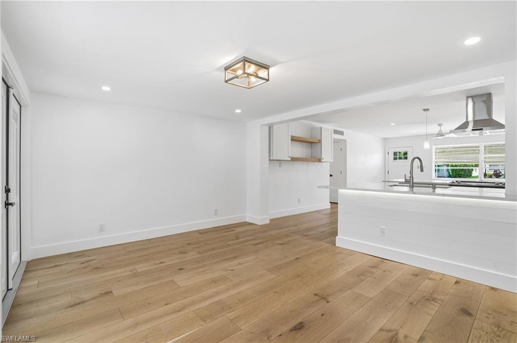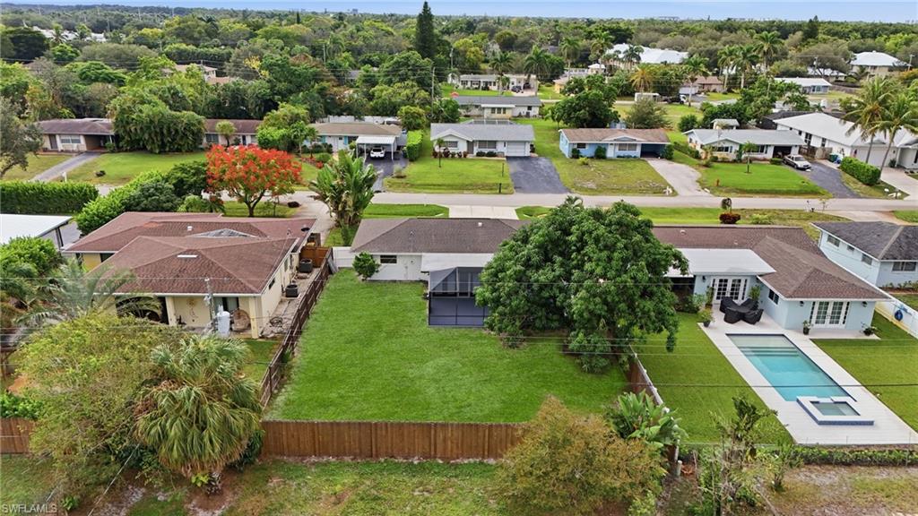 Tucked within a quiet, non-HOA neighborhood just one mile from the Gulf, this beautifully updated 3-bedroom, 2-bath home offers the best of Naples living. Step inside to find wide-plank white oak floors, large windows that fill the home with natural light, and a bright, inviting ambiance throughout. The sleek modern kitchen showcases white cabinetry, quartz countertops, stainless steel appliances, a striking vent hood, and ample counter space for cooking or entertaining. This residence features a versatile open layout with double living areas centered around the kitchen. Enjoy seamless indoor-outdoor living with French doors that open to a spacious screened lanai overlooking a large, fully fenced backyard—complete with plenty of room to add a pool. Both bathrooms are fully renovated, and the primary suite includes its own private side entrance—offering maximum privacy or the ideal setup for an in-law suite. Decorative exterior shutters add charm and curb appeal, while the property’s no rental restrictions and zoning for top-rated schools make it ideal for full-time or seasonal living. Ideally located just minutes from the beach, Venetian Village, Downtown Naples, Waterside Shops, and Mercato, this move-in-ready home blends style, comfort, and flexibility in one prime location.
