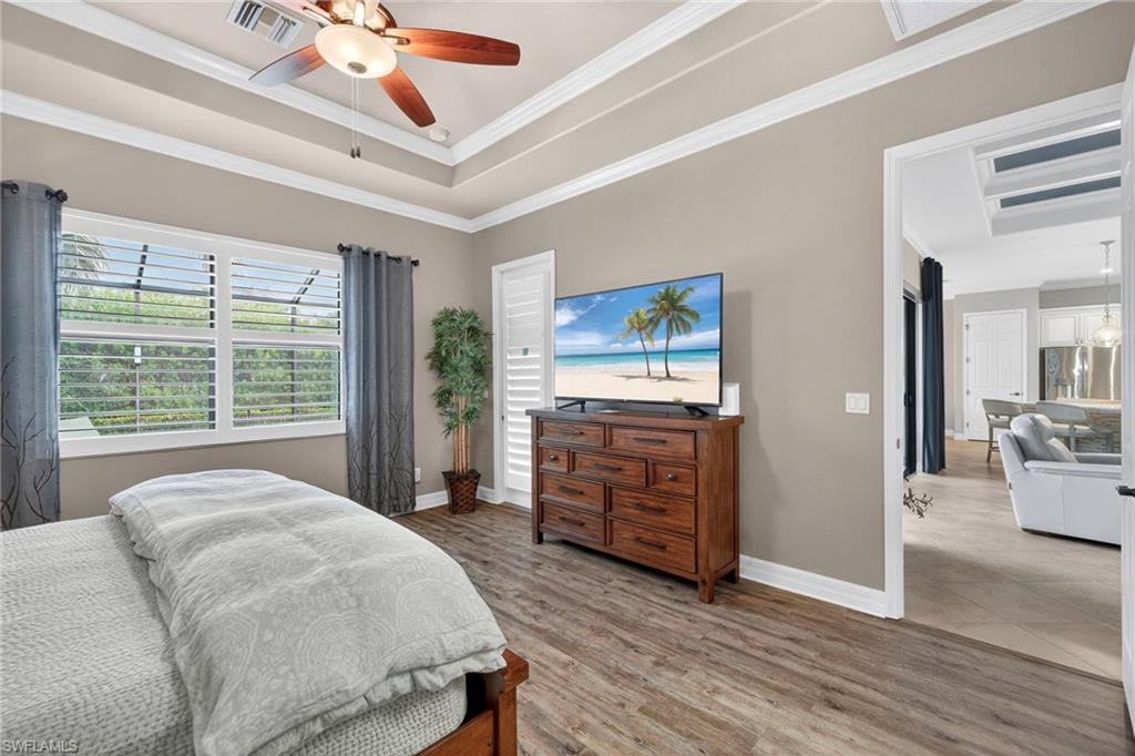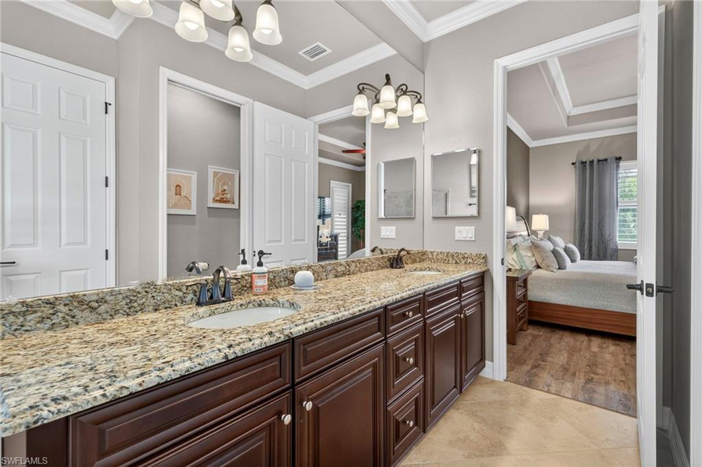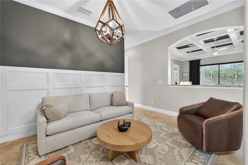 From the moment you arrive, the home’s inviting curb appeal and impact-resistant glass entry door set the tone for what lies beyond — a bright, open interior brimming with natural light and refined architectural touches. The entryway opens to soaring coffered ceilings, crisp wainscoting, and a welcoming layout that blends timeless design with modern sensibility. The kitchen, a true focal point of the home, features sleek white cabinetry, gleaming quartz countertops, and upgraded appliances — perfect for both everyday living and entertaining guests. The seamless transition from the indoor living area to the outdoor oasis through wide glass sliders creates the ideal Florida flow. Outside, a private retreat awaits. The screened lanai is complete with a built-in outdoor kitchen, a sparkling pool, and a rejuvenating spa — all framed by lush tropical landscaping for privacy and tranquility. Whether hosting friends for cocktails or enjoying a quiet evening under the stars, this is the ultimate Naples lifestyle setting. As part of Treviso Bay’s coveted social membership, residents enjoy access to the exclusive Villa Rilassare club, offering a resort-style lagoon pool, lap pool, poolside restaurant and bar, luxurious spa, fitness center, and courts for tennis, pickleball, and bocce. The TPC golf clubhouse provides additional dining, events, and community gatherings that make Treviso Bay one of Naples’ most sought-after communities. Located just five miles from Naples’ renowned white-sand beaches and the upscale shopping and dining of Fifth Avenue South, this exceptional property combines comfort, elegance, and an unbeatable location. It’s more than a home — it’s your private piece of paradise.