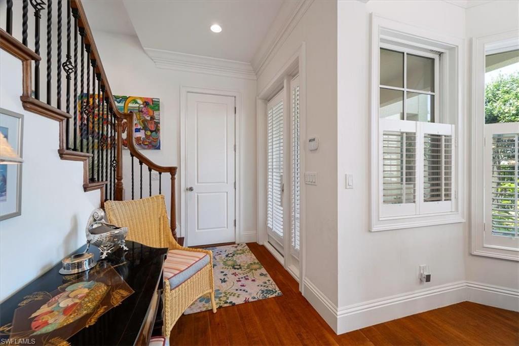 Located just moments from 5th Avenue’s upscale dining, boutique shopping, and the Naples library, this elegant 3-bedroom + den, 3-bath residence offers 2,482 sq. ft. of refined living. High ceilings, crown moulding, and hardwood floors create a sophisticated ambiance, while western exposure fills the home with golden afternoon light. A private entrance enhances the secluded, estate-like feel. The den/library offers a serene retreat, perfect for work or leisure. Enjoy modern comforts including air conditioning and an in-home washer/dryer. Style, privacy, and an unbeatable downtown location, this is Naples luxury living at its finest.