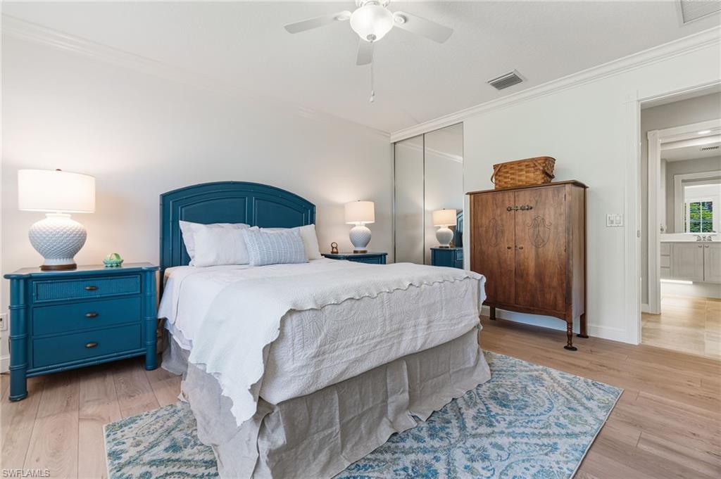 Welcome to this solid poured concrete Capri Model by DiVosta Homes, This 2 bedroom 2 bath home features a new roof installed in 2022. This home equipped with accordion hurricane shutters on all windows and a hurricane proof front door. The lanai is secured with electric roll-down shutters providing maximum hurricane protection throughout. Once you step inside this home it boasts elegant crown molding, wainscoting, and Planation shutters adding a touch of sophistication. The bedrooms feature new laminate wood flooring, offering both durability and style. Fresh paint throughout the interior creates a bright and inviting atmosphere. Step outside to a lovely paver patio off the lanai, perfect for outdoor entertaining and relaxing. This move-in-ready home combines comfort, style, and security in the desirable community of Veronawalk. Veronawalk offers 24 hr. guarded gated entry, lighted tennis, bocce ball, basketball and pickle ball courts, resort-size community Lagoon pool, lap pool, tot lot, over 20 miles trails, 24/7 gym, post office, café/restaurant, ice cream parlor, hair salon, gas station, library, computer center, ballroom, card rooms, and a full-time activities director. Convenient to both Naples and Marco Island beaches, shops and fine dining, Physicians Regional hospital and Florida Southwestern college nearby. The low HOA dues also include lawn care & irrigation, internet/cable