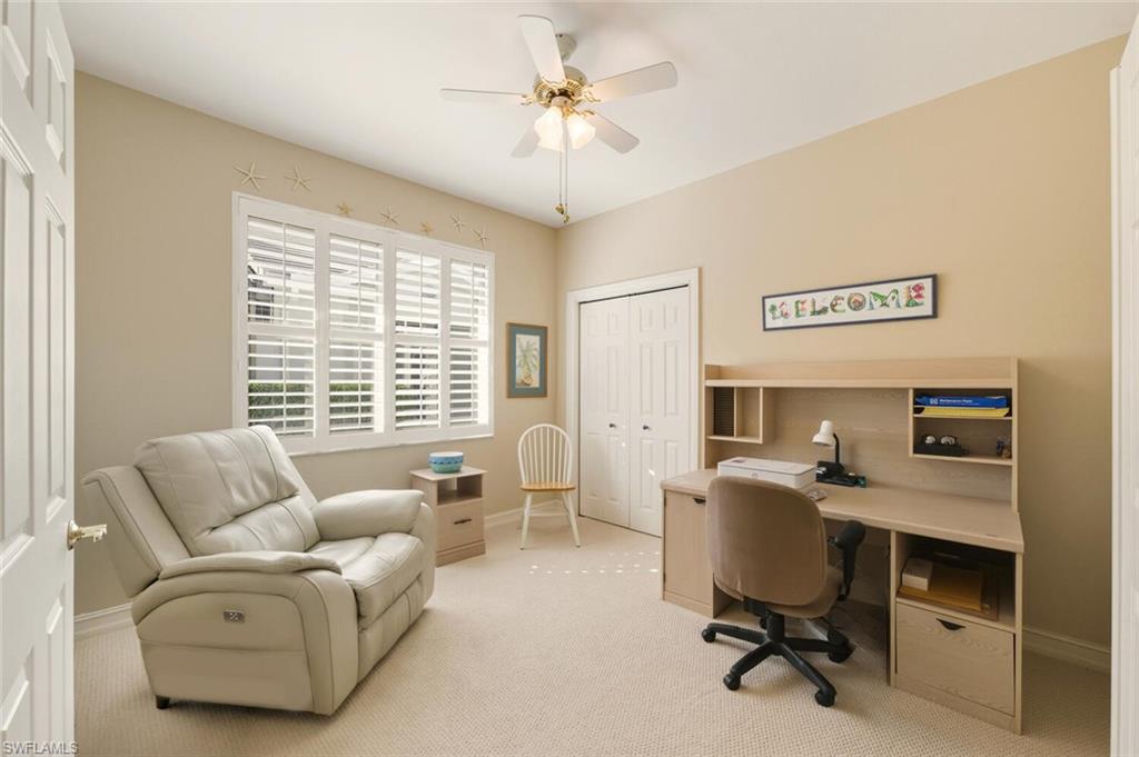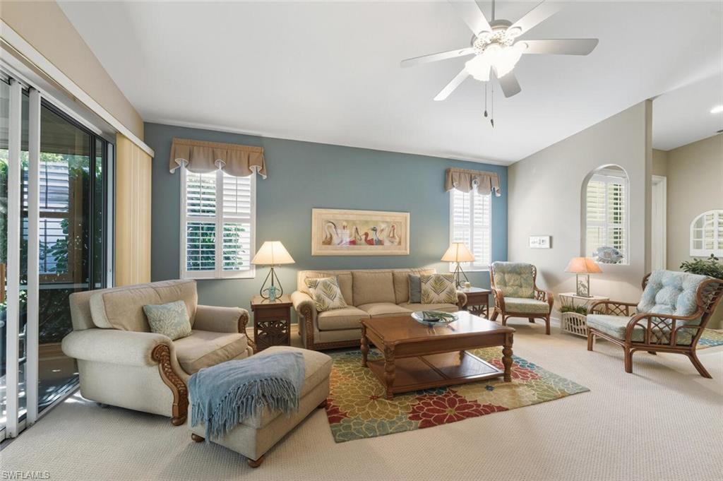 Beautifully maintained COMMODORE model ATTACHED VILLA in desirable TARPON COVE. This spacious 3BR/2BA home features an open floor plan with CATHEDRAL ceilings, abundant natural light, and neutral finishes. The SPACIOUS kitchen offers white cabinetry, white Corean countertops, a breakfast bar, and a cozy eat-in nook. PLANTATION SHUTTERS throughout and manual storm shutters for peace of mind. Recent updates include a NEWER TILE ROOF (2021), and A/C and water heater (both just 2 years old).The primary suite includes TWO walk-in closets and an ensuite bath with DUAL vanities, soaking tub, and SEPARATE shower. Enjoy relaxing on the screened lanai with a peaceful garden view. Two-car garage for convenience. Tarpon Cove offers resort-style amenities with 3 pools, tennis, fitness center, and OPTIONAL Yacht & Racquet Club membership with boat shuttle to the beach. Minutes to Gulf beaches, dining, and shopping in beautiful NAPLES.