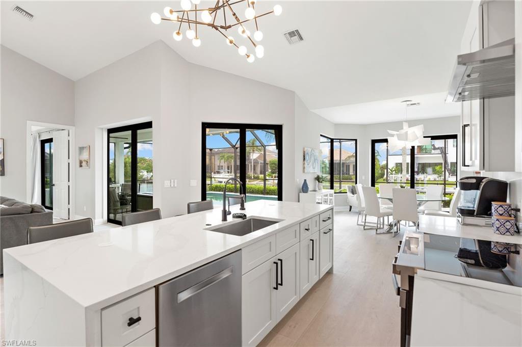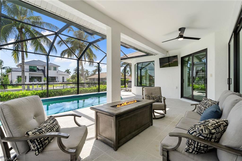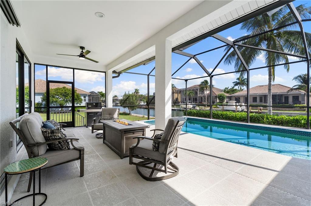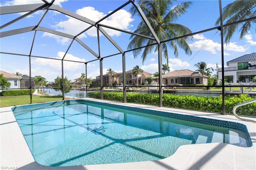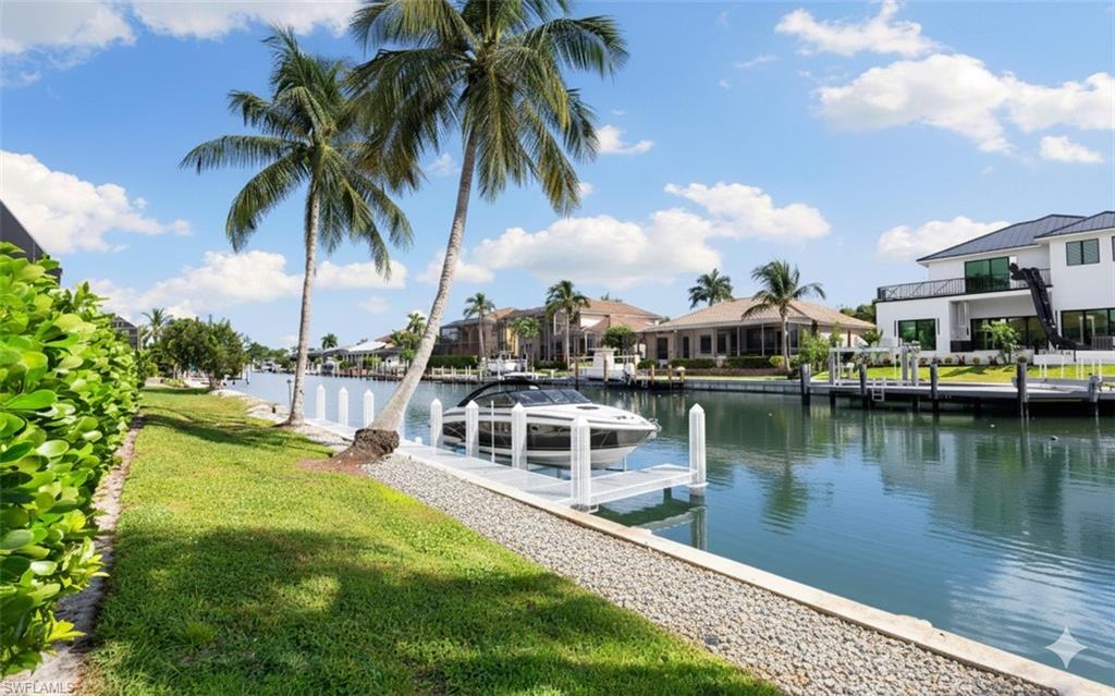 Beautifully Renovated Waterfront Home on Marco Island – Just Steps from the Beach with New Kitchen, Modern Baths, and a Sun-Drenched Pool! Welcome to 1111 Abbeville Court, your impeccably renovated and fully furnished coastal sanctuary on Marco Island. Just blocks from the beach, Marco Walk Plaza, and top island dining, this 4-bedroom, 2-bath residence combines elegant design, thoughtful function, and structural peace of mind in one stunning package. Inside, the single-level ranch layout flows effortlessly with a split-bedroom design and dramatic vaulted ceilings that frame the expansive open-concept living area. The chef’s kitchen is a showstopper—featuring white shaker cabinetry, a waterfall-edge island, high-end stainless appliances, and a generous walk-in pantry that can double as an owner’s closet. Perfect for entertaining, the light-filled great room and dining area connect seamlessly to the lanai through wide sliding glass doors, extending your living space outdoors. The primary suite offers a peaceful retreat with pool access, a spacious walk-in closet, and a luxurious spa bath complete with double vanities, backlit mirrors, a soaking tub, and a large multi-head shower. Guests enjoy privacy in beautifully appointed bedrooms and an upgraded bath with modern finishes and a rain shower. Set on an oversized lot with approximately 100 feet of water frontage, this home provides a boater’s dream location—quick Gulf access and plenty of room to envision a future dock or lift. The southern exposure ensures all-day sun and glowing sunsets over the screened lanai, where you’ll find a heated pool, outdoor TV, and fire-pit lounge area for year-round enjoyment. Built with confidence, this home features a solid concrete exterior shell, impact-rated windows and doors (2023), a newer tile roof (2019), and an elevated 9.8’ floor height in a 9’ flood zone, offering rare storm and flood protection. Additional highlights include a large two-car garage, oversized driveway, and low-maintenance landscaping—making this the perfect lock-and-leave island residence. Whether you’re seeking a turnkey vacation home, an investment property, or your full-time retreat, this elevated waterfront masterpiece delivers peace of mind, elegance, and the true essence of island living. Stop dreaming and start living the Marco Island lifestyle—schedule your private tour today!
