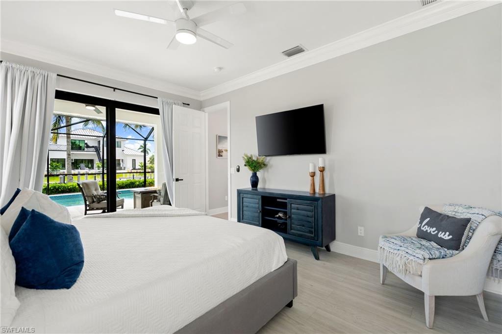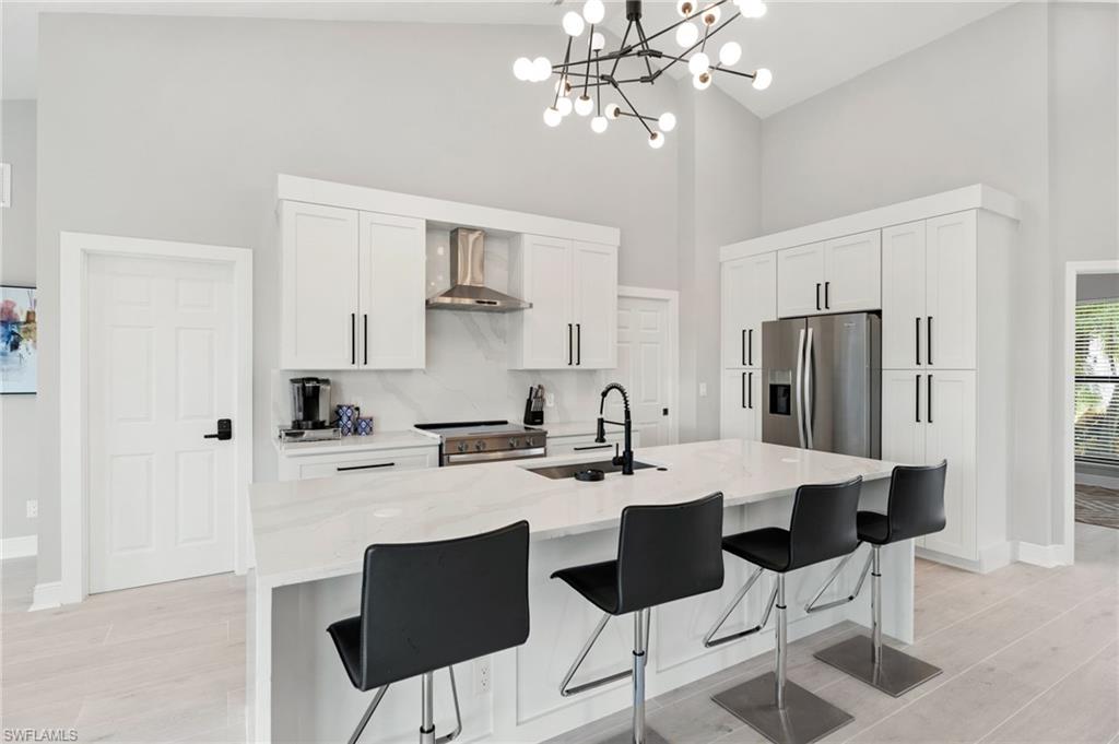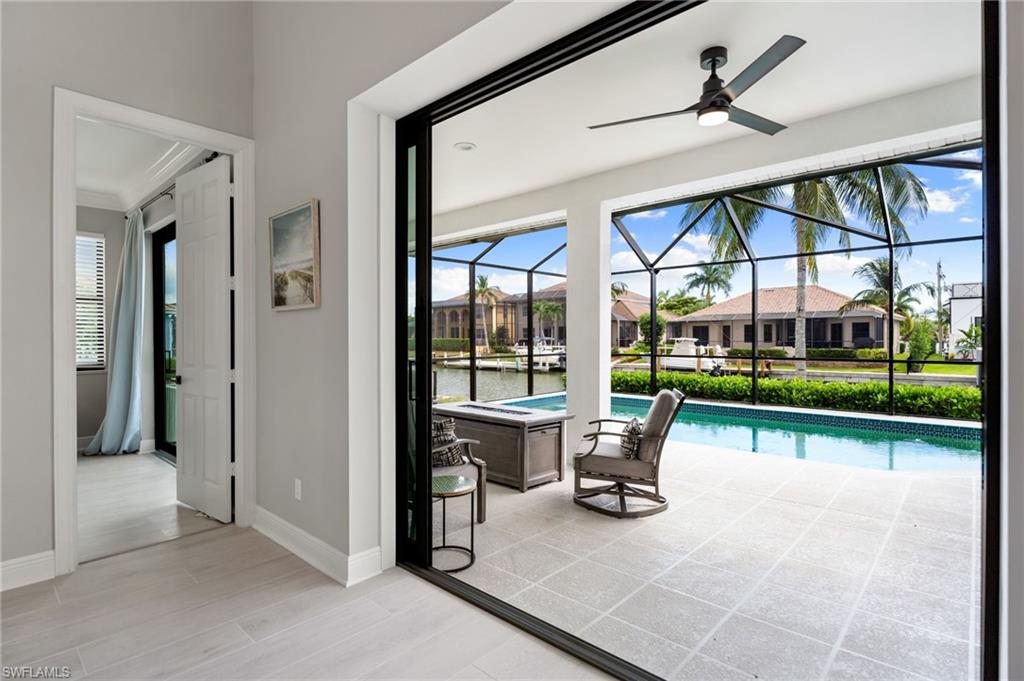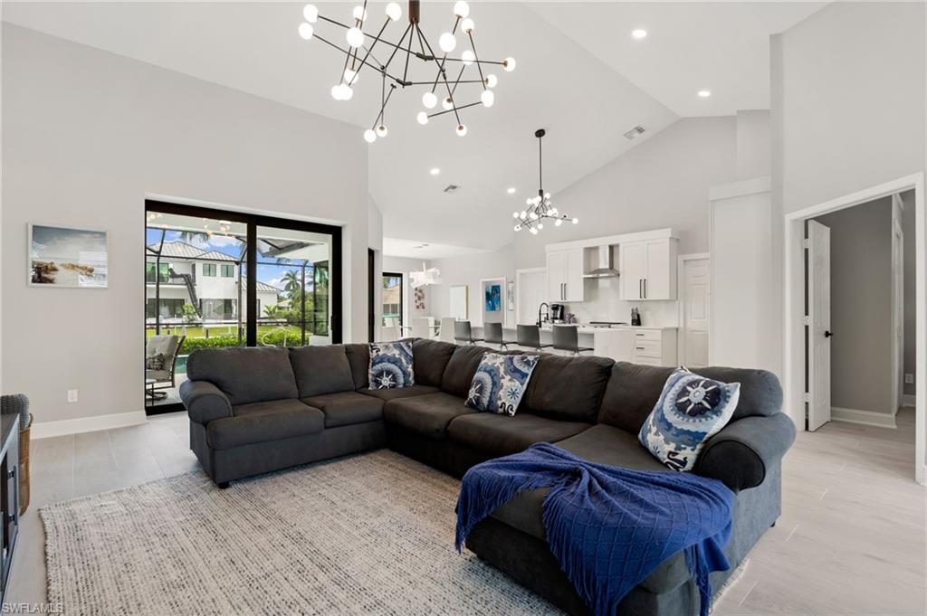 Beautifully Renovated Waterfront Home on Marco Island – Just Steps from the Beach with New Kitchen, Modern Baths, and a Sun-Drenched Pool! Welcome to 1111 Abbeville Court, your impeccably renovated and fully furnished coastal sanctuary on Marco Island. Just blocks from the beach, Marco Walk Plaza, and top island dining, this 4-bedroom, 2-bath residence combines elegant design, thoughtful function, and structural peace of mind in one stunning package. Inside, the single-level ranch layout flows effortlessly with a split-bedroom design and dramatic vaulted ceilings that frame the expansive open-concept living area. The chef’s kitchen is a showstopper—featuring white shaker cabinetry, a waterfall-edge island, high-end stainless appliances, and a generous walk-in pantry that can double as an owner’s closet. Perfect for entertaining, the light-filled great room and dining area connect seamlessly to the lanai through wide sliding glass doors, extending your living space outdoors. The primary suite offers a peaceful retreat with pool access, a spacious walk-in closet, and a luxurious spa bath complete with double vanities, backlit mirrors, a soaking tub, and a large multi-head shower. Guests enjoy privacy in beautifully appointed bedrooms and an upgraded bath with modern finishes and a rain shower. Set on an oversized lot with approximately 100 feet of water frontage, this home provides a boater’s dream location—quick Gulf access and plenty of room to envision a future dock or lift. The southern exposure ensures all-day sun and glowing sunsets over the screened lanai, where you’ll find a heated pool, outdoor TV, and fire-pit lounge area for year-round enjoyment. Built with confidence, this home features a solid concrete exterior shell, impact-rated windows and doors (2023), a newer tile roof (2019), and an elevated 9.8’ floor height in a 9’ flood zone, offering rare storm and flood protection. Additional highlights include a large two-car garage, oversized driveway, and low-maintenance landscaping—making this the perfect lock-and-leave island residence. Whether you’re seeking a turnkey vacation home, an investment property, or your full-time retreat, this elevated waterfront masterpiece delivers peace of mind, elegance, and the true essence of island living. Stop dreaming and start living the Marco Island lifestyle—schedule your private tour today!