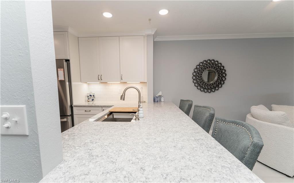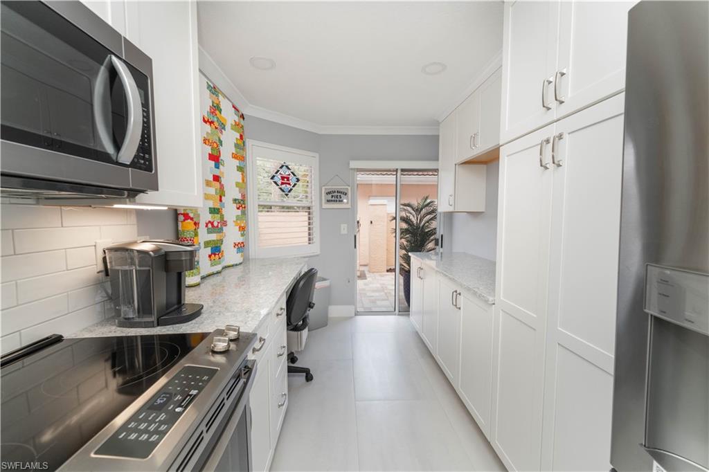 Fully renovated and move-in ready, this stunning 2-bedroom, 2-bath condo in Emerald Greens overlooks the Quail Run Golf Course and offers the best of Naples living. Enjoy a bright, open layout with high ceilings, open kitchen with breakfast nook, and brand new quartz countertops. Relax on your screened lanai with peaceful sunset golf course views. Or Enjoy your own courtyard where you can grill out and barbecue and your own 1 car detached garage. Additional updates include custom walk in shower, new kitchen cabinets, upgraded appliances, custom built primary closet, brand new tile and carpets throughout bedrooms. Located just minutes from shopping, dining, and Clam Pass Beach, this condo combines comfort, style, and convenience in the heart of Naples. Schedule your showng today!