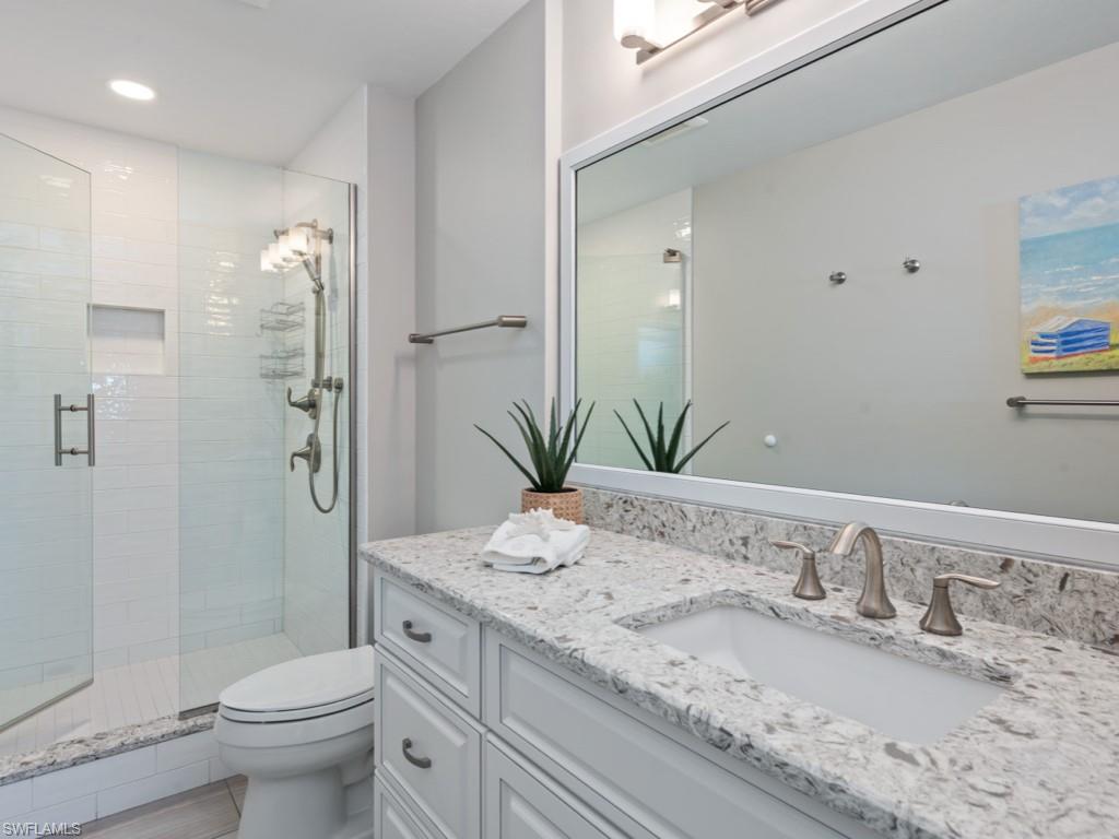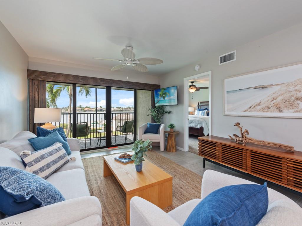 Gorgeous 2 bedroom, 2 bath residence with outstanding bay views! This exceptional home features a light and bright interior, tile flooring throughout the main living space, and beautifully updated kitchen that has been opened to the main living space creating a desirable open floor plan. The master suite is a private retreat with delightful views, walk-in closet, and updated ensuite bath with walk-in shower. The screened lanai is the perfect place to relax an unwind while taking in the magnificent views of the beautiful grounds, pool, and Smokehouse Bay. Enjoy extra piece of mind and security with electric shutters on the lanai. Smokehouse Harbour offers many fine amenities including bayside pool, fishing pier, bike storage, and community dock with slips for lease via a short waitlist. Smokehouse Harbour is conveniently located near the Esplanade Shoppes offering many dining and shopping options. Nearby Veterans’ Park offers an array of entertainment and activities, including Marco Island’s weekly farmers’ market. Enjoy Marco’s pristine, white sand beach within minutes of leaving your front door. Make this stunning residence your island paradise.