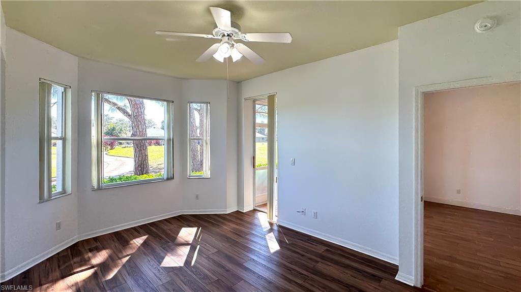 This sunfilled 2 bed, 2 bath 1st floor condo backing to the 8th tee box is just waiting for your decorative touches.This is the perfect blank canvas for you to put your stamp on in the highly sought-after golf community of Country Creek. Updates include wood plank ceramic flooring, granite counter tops, all appliances less than 3 years old, some new light fixtures and fans, primary bathroom has been remodeled in the latest trend. Relax on your private screened lanai, ideal for morning coffee or evening dinners while soaking up the Florida sunshine and watching golfers pass by. Covered parking and storage closet are convenient for storing your golf clubs and beach chairs. Condo has electric hurricane shutter off the back lanai and manual shutters for the additional windows. Country Creek is a lush, resort-style community offering an 18-hole executive bundled golf course with low cart fees, five clay tennis courts, bocce leagues, and five sparkling swimming pools. The vibrant Village Clubhouse features a full-service restaurant and bar, fitness center, card rooms, and endless activities to enjoy. Perfectly located between Naples and Fort Myers, you’ll be just minutes from I-75, RSW International Airport, Florida Gulf Coast University, Coconut Point Mall, Miromar Outlets, dining, and world-class beaches. This condo combines comfort, convenience, and resort-style living—all in one of Southwest Florida’s most desirable bundled golf communities.