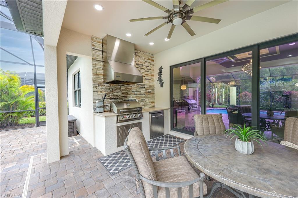 One story (Summerville model) home loaded with upgrades. This 3 bed, 3 bath plus den home has many desirable features including gourmet style kitchen with GAS range, expanded lanai, outdoor kitchen, outdoor lighting, coffered ceilings, crown molding, impact resistant windows and doors, 3 car garage with finished epoxy floor, tankless water heater, custom backsplash and much more!!! There's also Impact resistant sliders from the Master suite and triple-sliders from main living area to pool. Smart Home technology includes Amazon Nest, Ring and wireless upgrades. All rooms have blinds and drapes and all bedrooms have upgraded ceiling fans. Lamorada has low HOA fees and has a luxury 13,000 square foot clubhouse with a poolside bar with food and beverage service. Other amenities include a pool with lap lanes, spa, fitness center, movie theater, culinary arts studio, tennis, pickleball and bocce. Lamorada is located a short distance from the future development of "The Pointe" at Founders Square, adding several new shopping, entertainment and dinning options to this already fabulous Naples location.